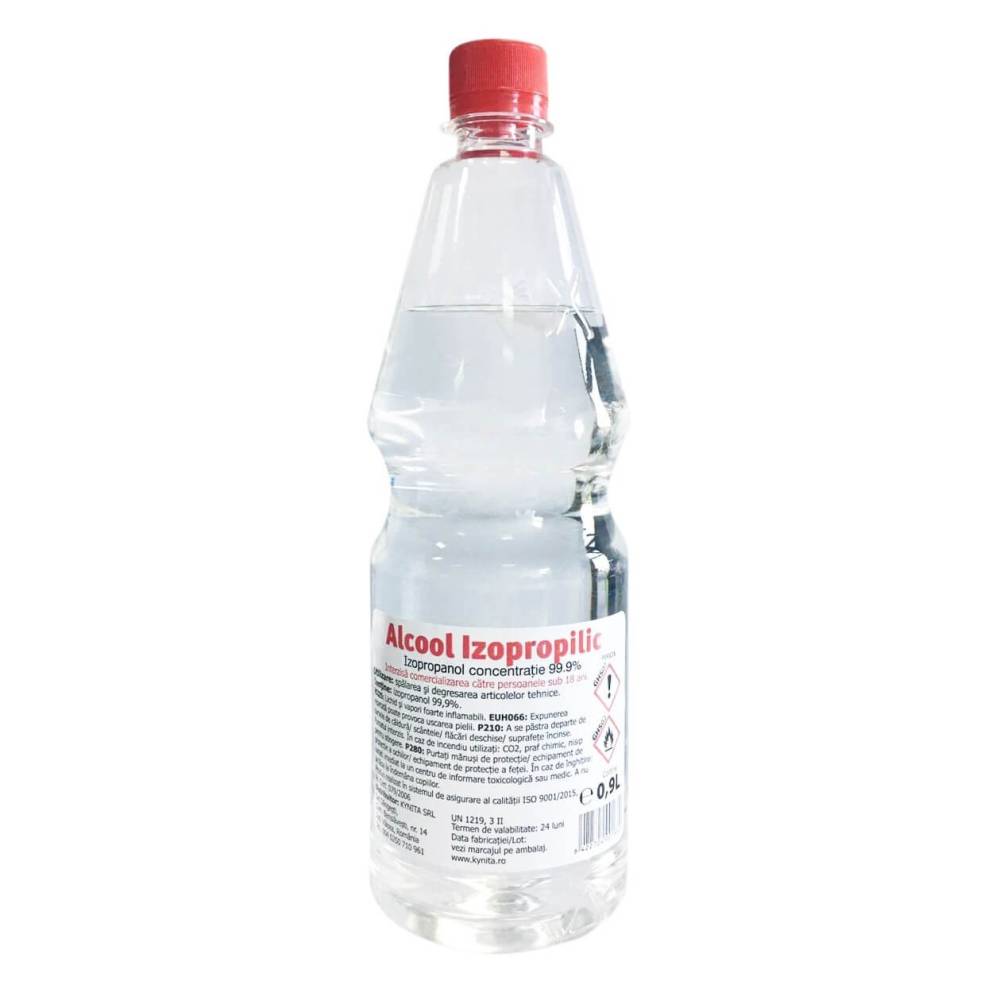 Alcool Izopropilic, concentratie 99.9%, 900 ml Alcoolul izopropilic NU este destinat consumului uman. A NU se lasa la indemana copiilor. A NU se confunda cu alcoolul etilic.