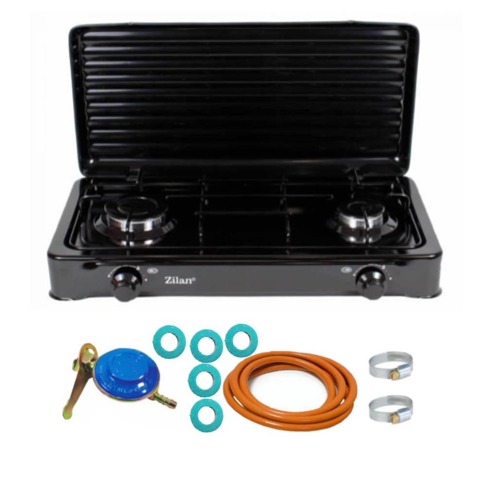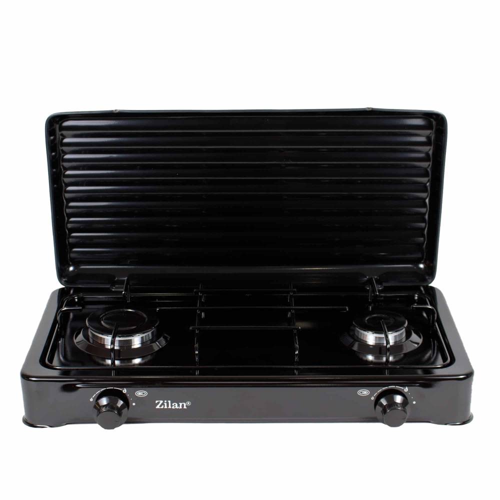 - Aragaz cu 2 ochiuri, pentru butelie, cu capac, Negru (cod produs colZLN0025_2)