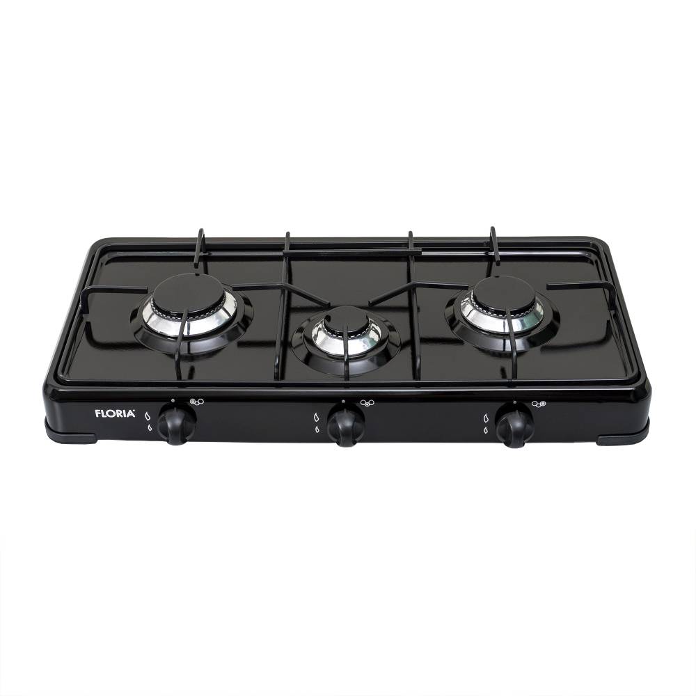 Aragaz cu 3 ochiuri, fara cuptor - pentru butelie, Negru, Floria