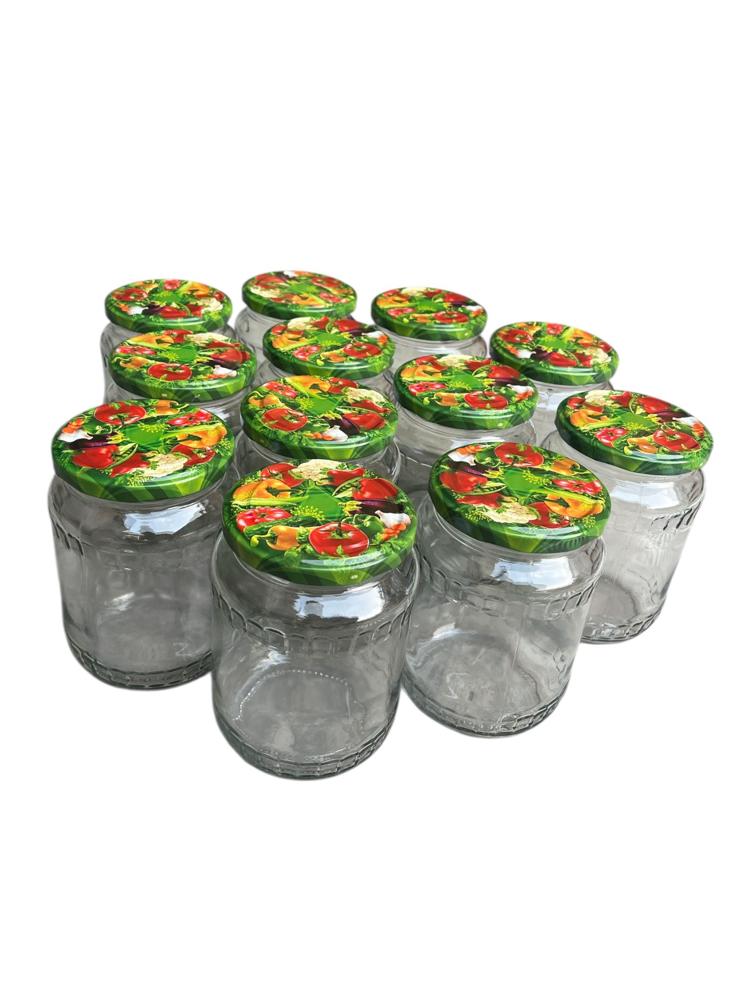 Borcan 720 ml cu capac legume, set 12 bucati - acest set este alcatuit din 12 bucati borcan 720ml si 12 bucati capac borcan legume twist off.