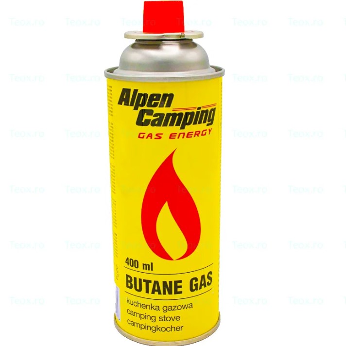 Butelie gaz spray Alpen Camping 400ml- acest spray pentru aragaze portabile este compatibil cu toate tipurile de aragaze portabile, arzatoare, incalzitoare cort care folosesc butelii tip spray.