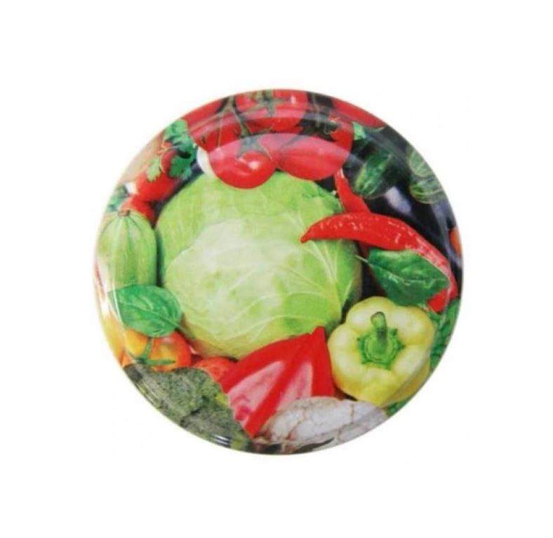 Capac borcan, 66mm model legume - acest capac sigileaza perfect continutul borcanului pentru a putea fi pastrate o perioada indelungata de timp, datorita sistemului de inchidere twist-off.