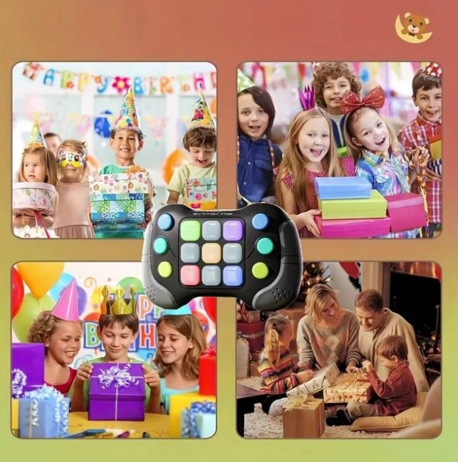 Consola, Joc Interactiv Pop It, 600 nivele, Galben /Gri - acest joc capteaza atentia atat copiilor cat si adultilor, ajutand astfel la eliminarea stresului si a anxietatii, prin cele 5 moduri de joc distractive cu lumini si sunete.