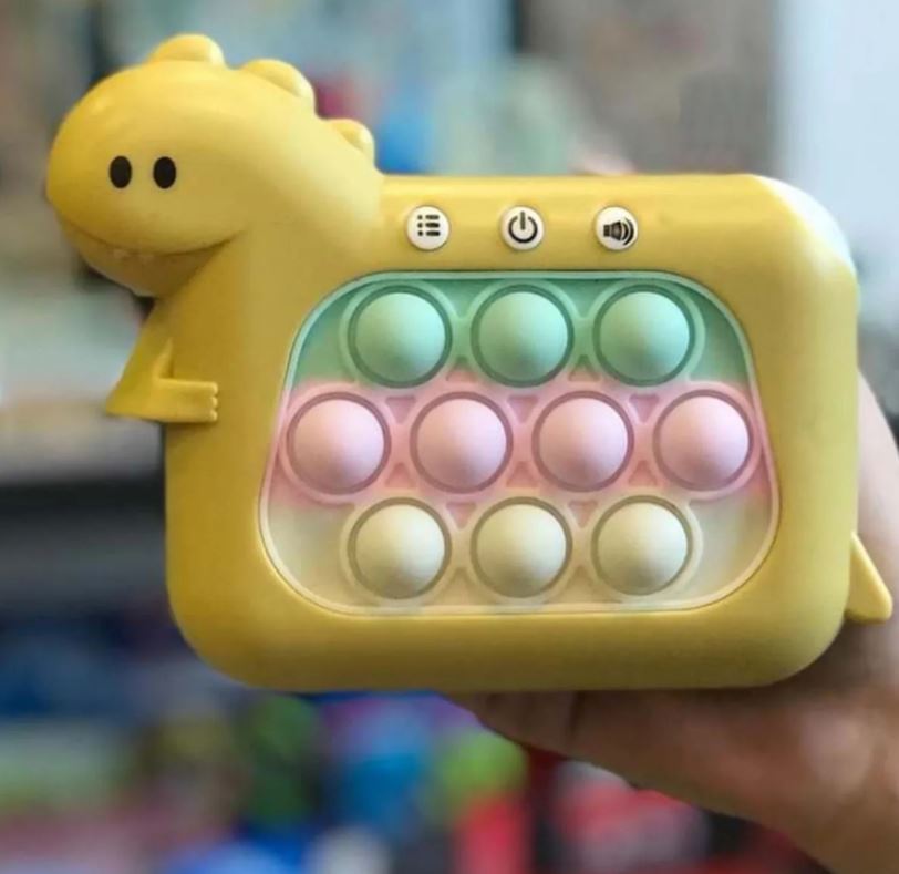 Consola, Joc Interactiv Pop It, Model Dinozaur, Galben - acest joc capteaza atentia copiilor, ajutand astfel la eliminarea stresului si a anxietatii, prin cele 4 moduri de joc distractive cu lumini si sunete.