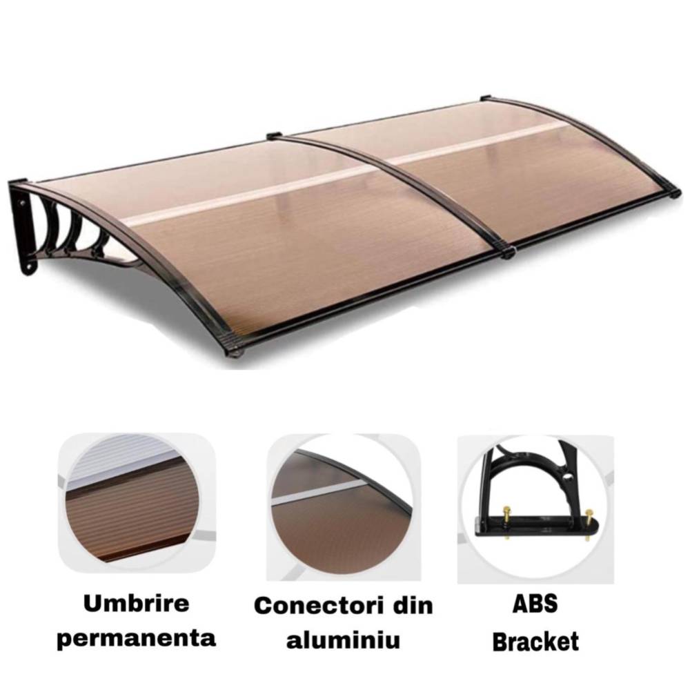 Copertina / Marchiza din policarbonat fumuriu 100x150 cm - aceasta marchiza are rol atat decorativ cat si de protectie impotriva fenomenelor naturale, cum ar fi soarele, ploaia, zapada, grindina sau vantul puternic, fiind rezistenta la decolorarea cauzata de razele soarelui.