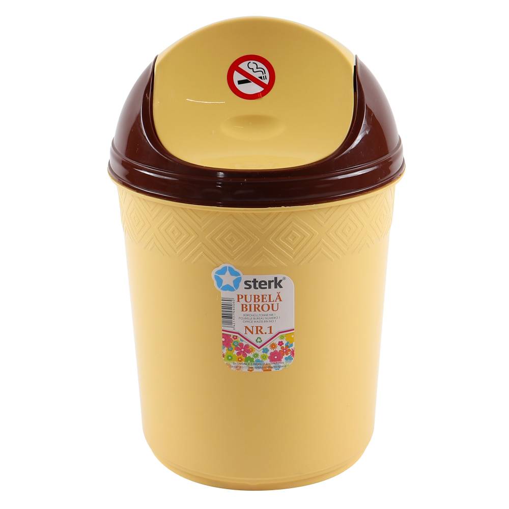 Cosul de gunoi cu capac batant de culoare crem este fabricat in totalitate din polipropilena flexibila, cu rezistenta inalta la socuri si variatii de temperatura. Cosul este prevazut cu capac mobil, actionat prin simpla impingere ce revine automat pe pozitia de inchis. Multumita design-ului sau, acest cos de gunoi cu capac batant de culoare crem cu elemente maro, poate fi amplasat in baie, bucatarie, birou sau sala de conferinte. De asemenea, capacul este detasabil, incat sa se poata rasturna in vederea aruncarii gunoaielor din acesta.