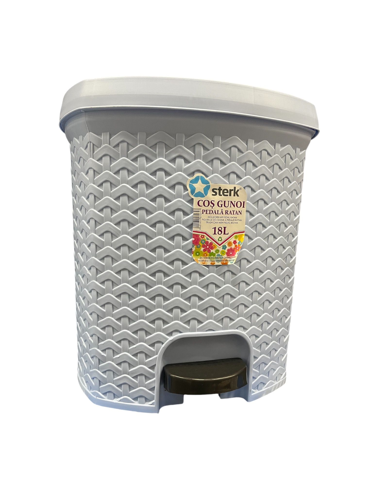 Cos de gunoi cu pedala 10 L, Gri deschis- acest cos gunoi cu pedala are o capacitate de 10 litri, realizat din polietilena flexibila cu densitate ridicata, capac etans ce poate fi deschis atat manual cat si prin apasarea cu piciorul a pedalei aflate la baza cosului.