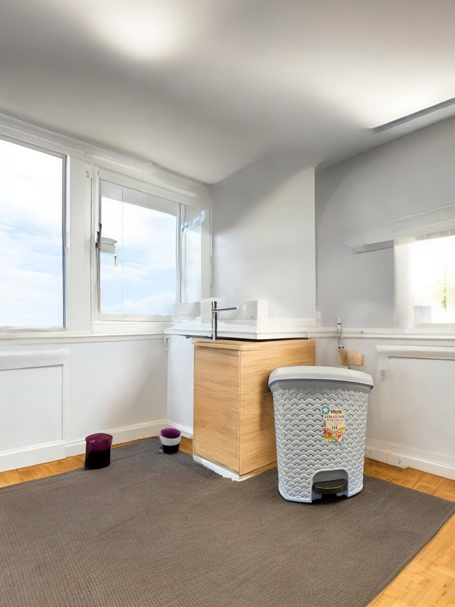 ✅Acesta mai are in dotarea lui o galeata cu maner aflata pe interiorul cosului, de culoare neagra, speciala pentru golirea rapida si eficienta a gunoaielor din acesta.
