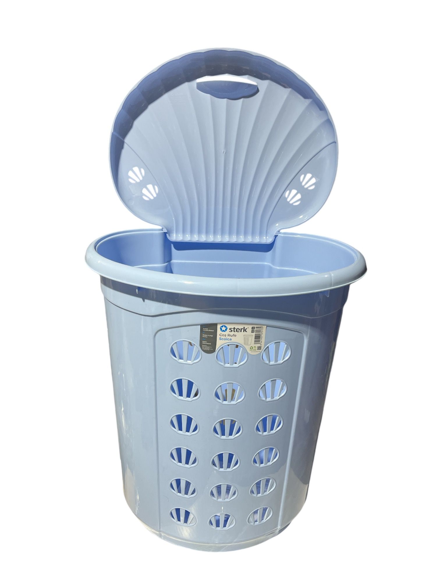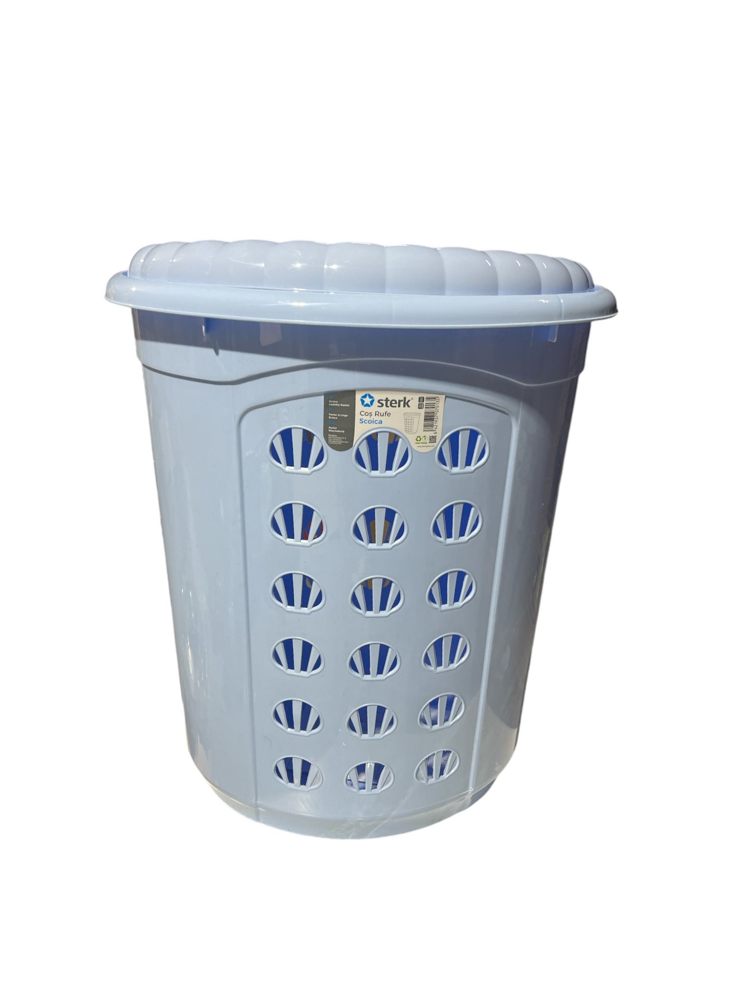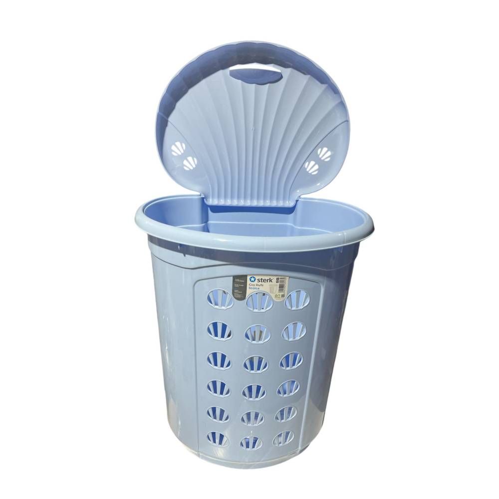 Cos de Rufe STERK Scoica 54L, 46x36x54 cm, Plastic Albastru- acest cos este necesar pentru orice gospodina care isi doreste o baie ordonata cu hainele depozitate intr-un loc curat si ferit de praf sau umezeala.