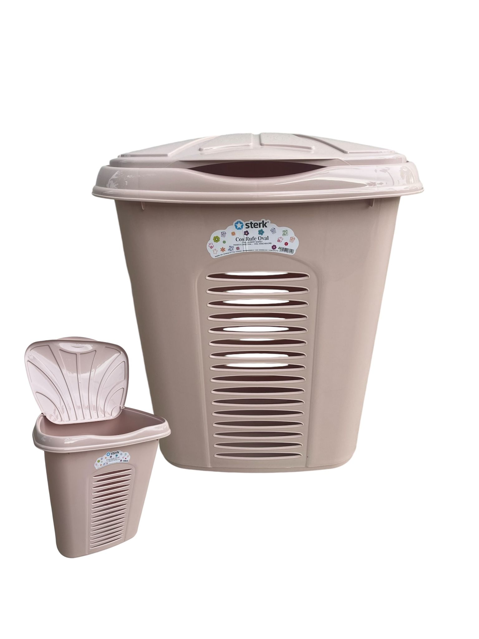 Cos pentru rufe Roz, Oval, cu capac, 44x35x51cm, Sterk - acest produsul este necesar pentru orice gospodina care isi doreste o baie ordonata cu hainele depozitate intr-un loc curat si ferit de praf sau umezeala.