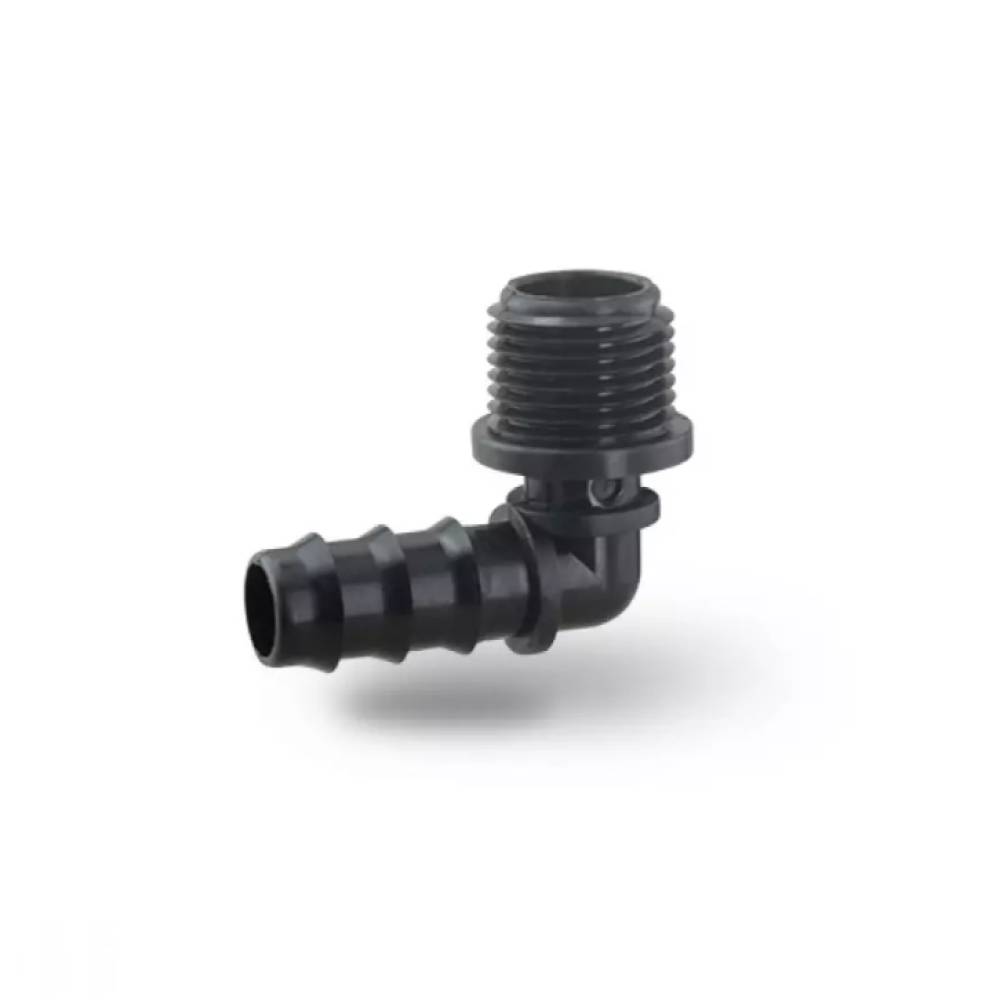 Cot pentru tub picurare 16mm, filet exterior 1/2 - acest cot este compatibil cu tubul de picurare de 16mm si se foloseste pentru ramificarea sistemului de irigare.