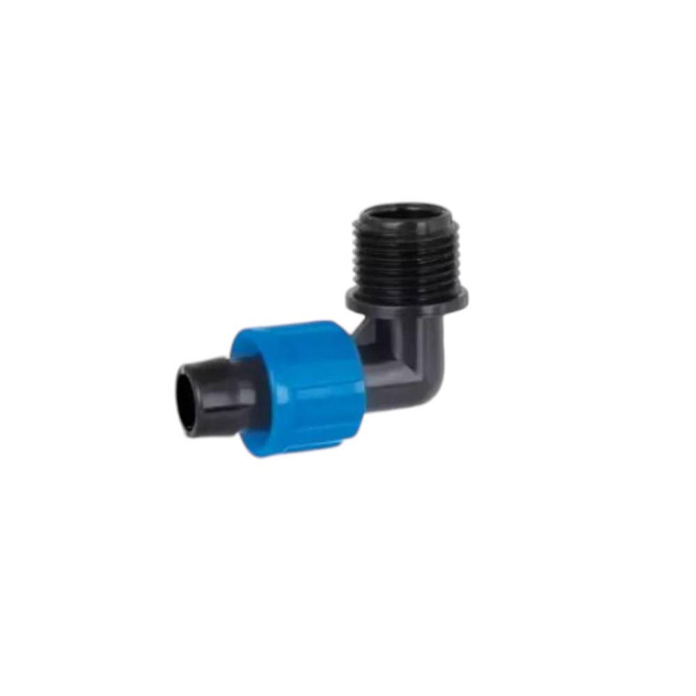 Cot tub irigare cu piulita, 16mm x 1/2, filet exterior - se utilizeaza la imbinarea tuburilor de picurare pentru schimbarea directiei sistemului de irigare.