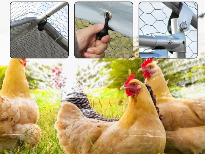 Cotet, tarc pentru gaini 3x2x2m - acest cotet pentru gaini este fabricat din bare de fi 2.5cm de otel galvanizat, plasa de otel vopsit 0.6mm, culoare verde si acoperis din polietilena, culoare alba si se foloseste atat pentru pasari, pui, gaini, rate cat si pentru animale mici, cum ar fi iepuri, asigurand un spatiu suficient de mare si confortabil pentru micile vietuitoare.