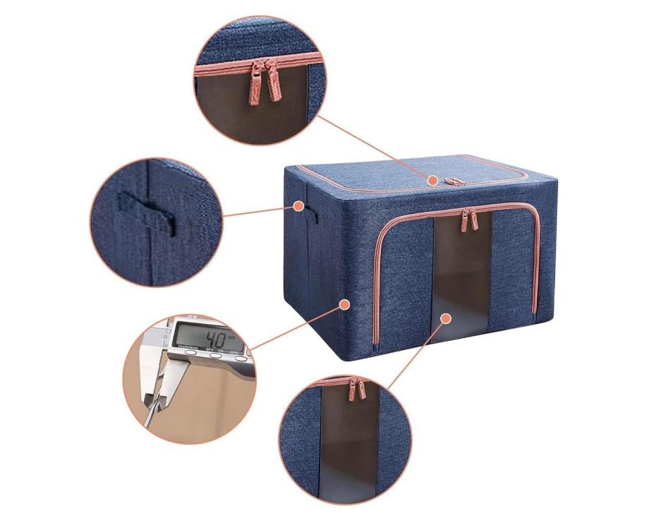 Cutie depozitare 100L cu fermoar, Bleumarin, o fereastra