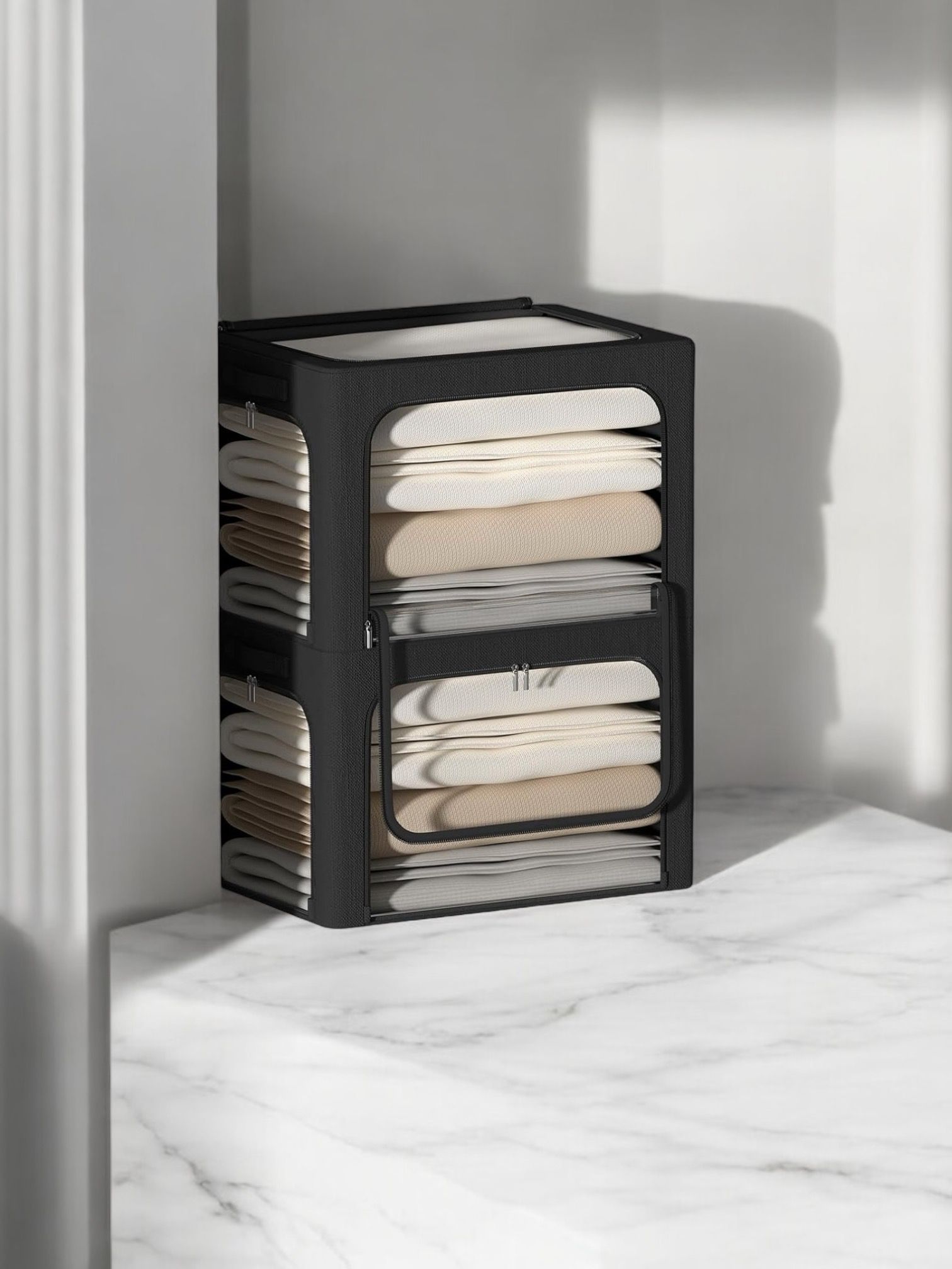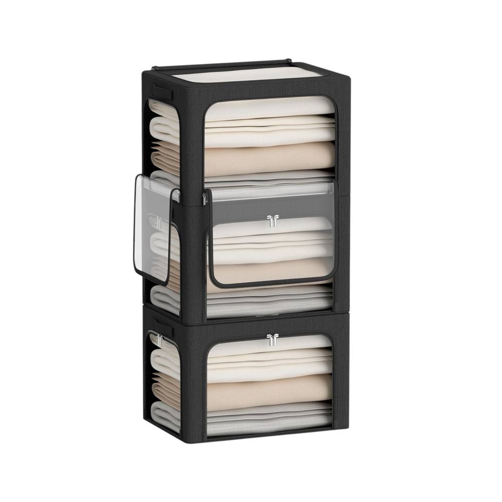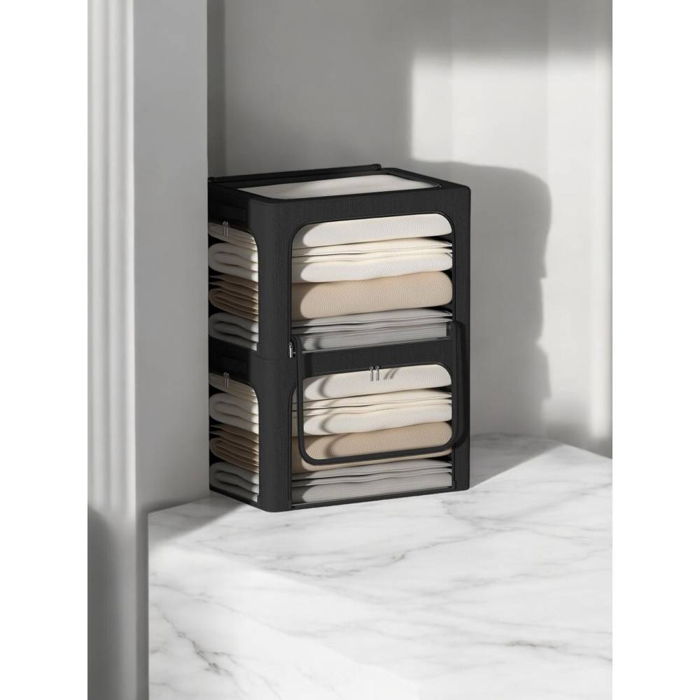 ✅Cutia, este prevazuta cu cadru din otel de 3.7mm si are 3 ferestre: doua laterale si una frontala, pentru a putea vizualiza cu usurinta continutul si se potriveste perfect in dulap sau dressing.