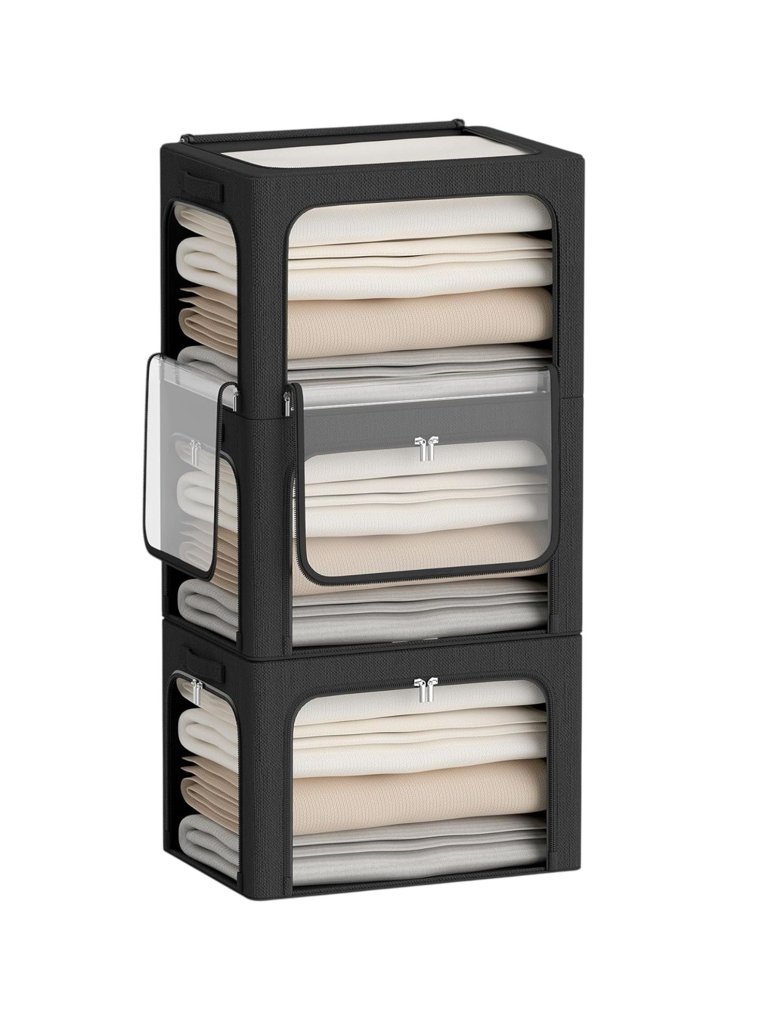 Cutie depozitare 38L culoare Negru, 3 ferestre - aceasta cutie este ideala pentru depozitarea eficienta a hainelor, paturilor, lenjeriilor, pilotelor sau hainelor de sezon.