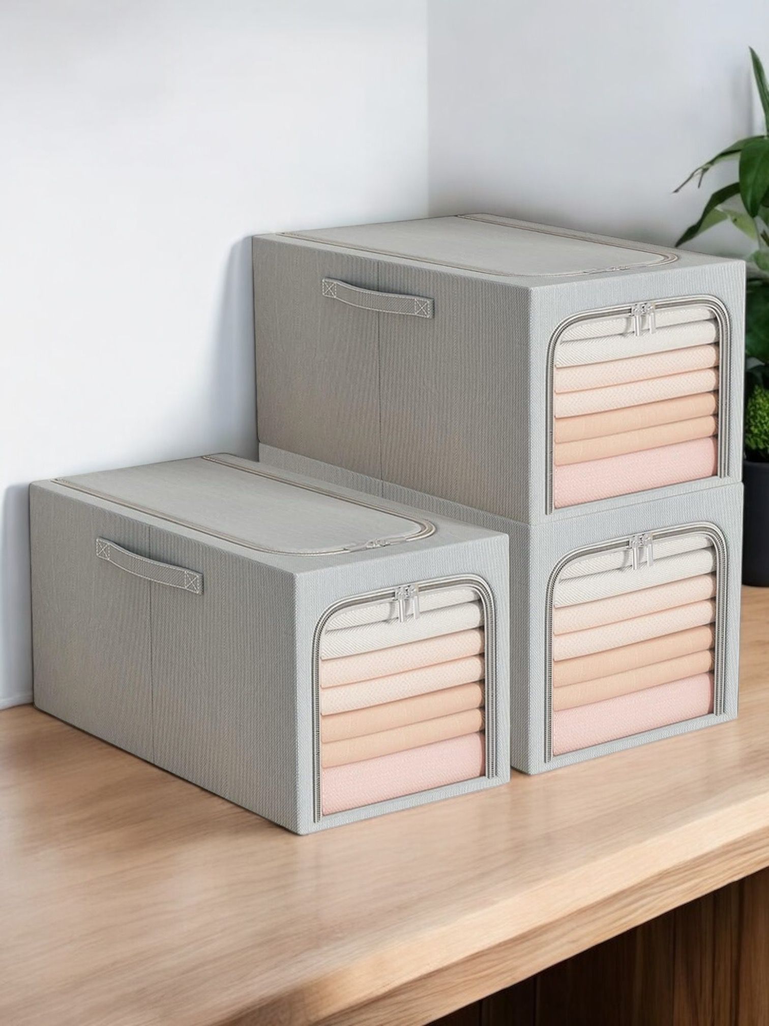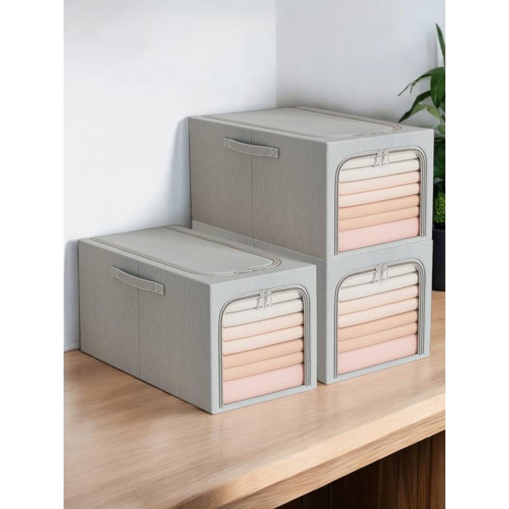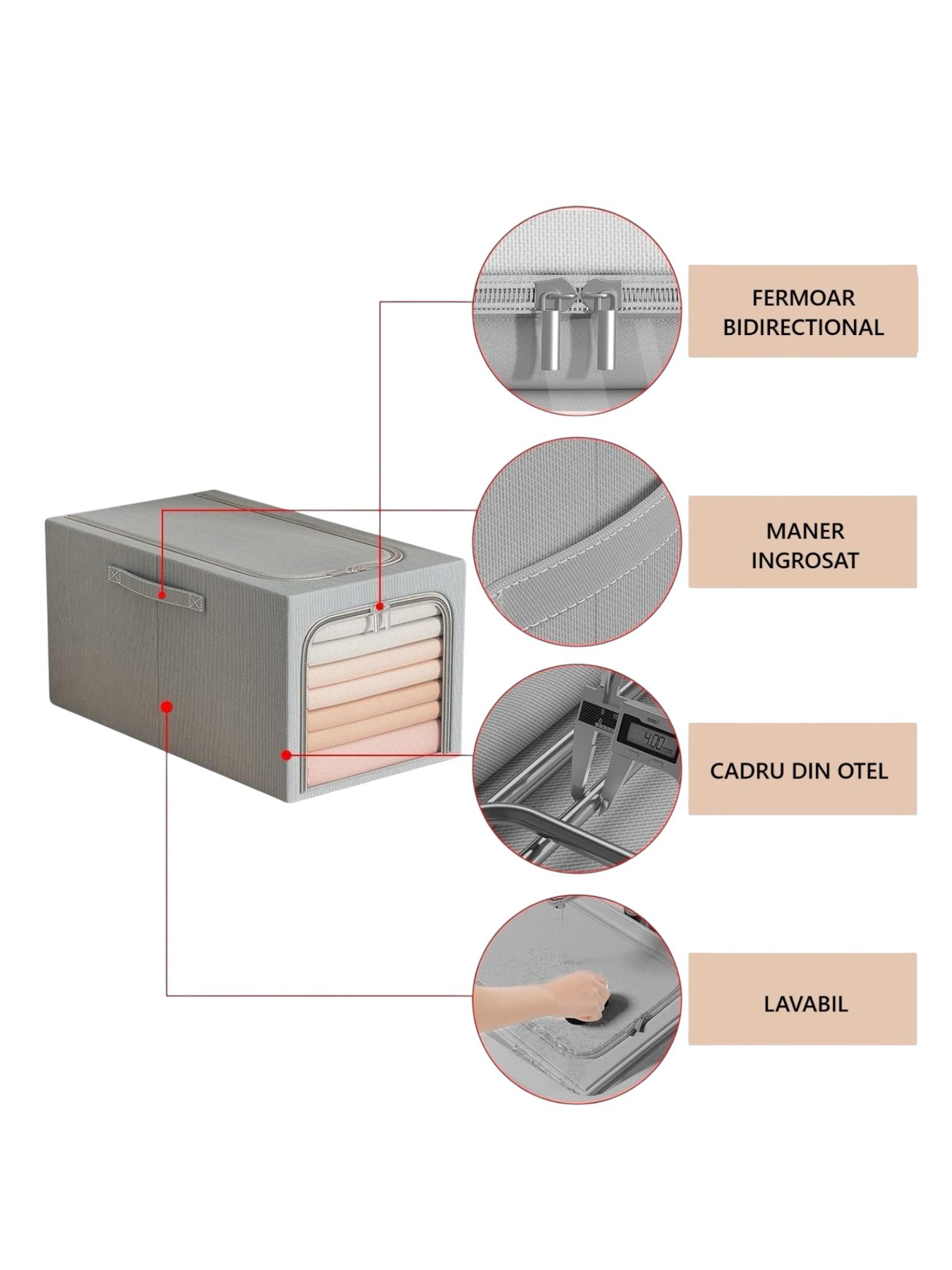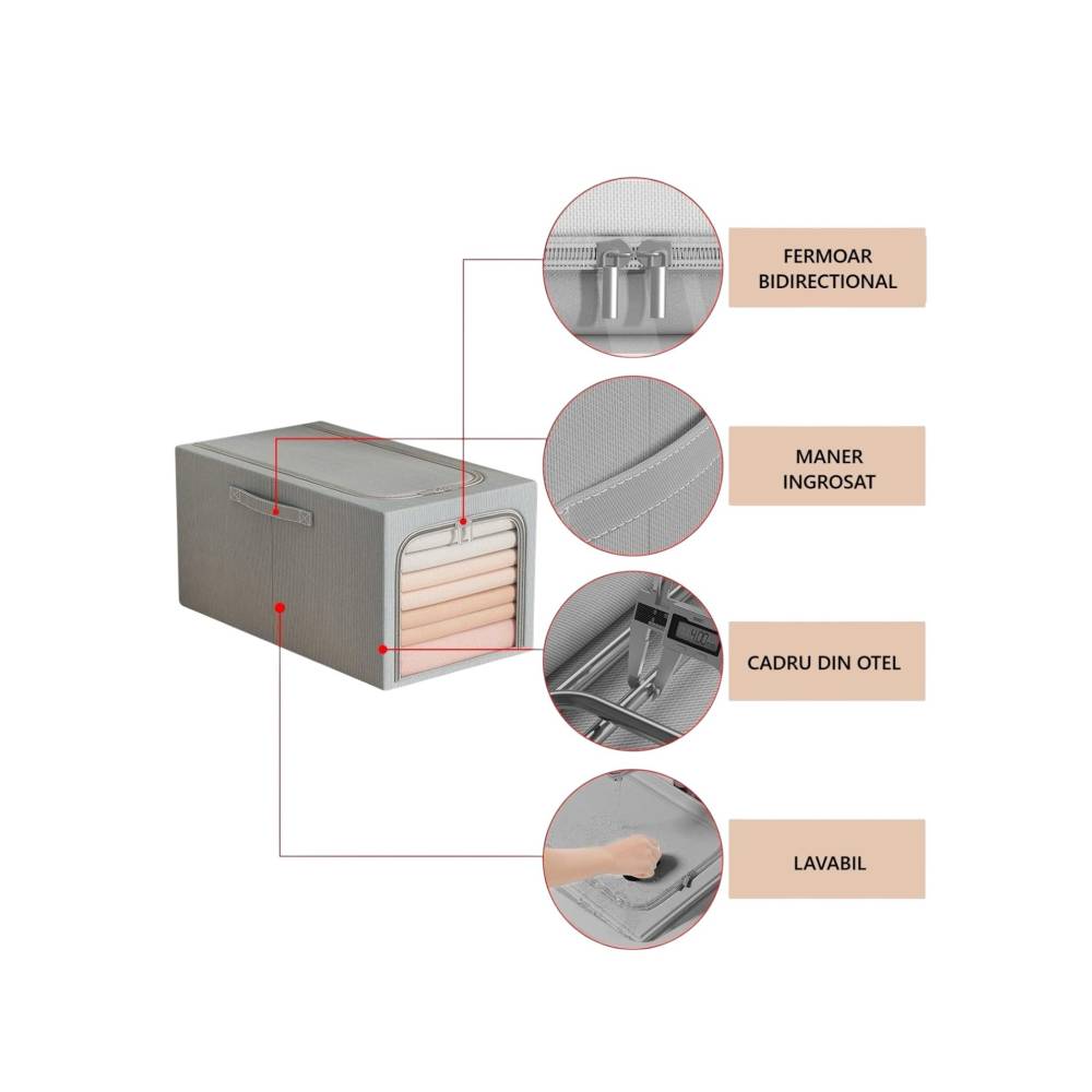 Cutie depozitare cu cadru metalic Albastru Fumuriu, 49L - aceasta cutie este ideala pentru depozitarea eficienta a hainelor, paturilor, lenjeriilor, jucariilor sau hainelor de sezon.
