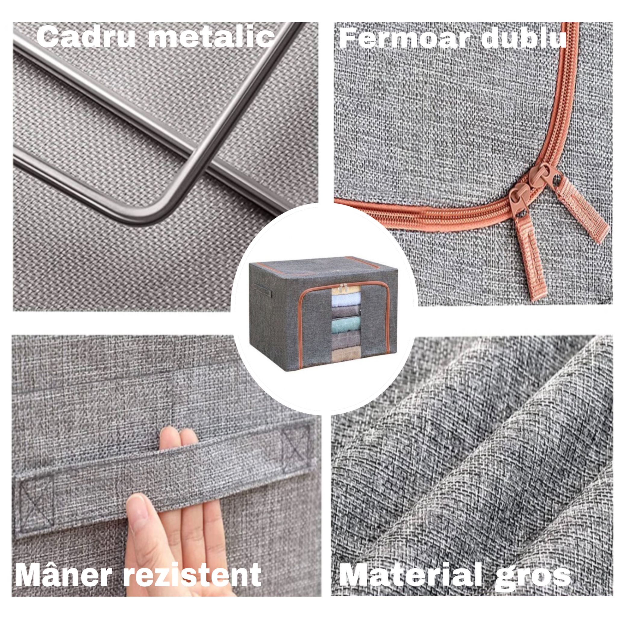 Aceasta cutie are manere intarite pe ambele parti, este spatioasa pentru depozitarea diferitelor obiecte din casa precum lenjerii, pilote, jucarii, perne, jachete sau haine. Puteti depozita plapumi, paturi de iarna , obiecte voluminoase.