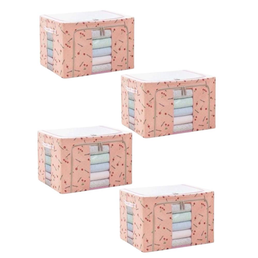 Cutie depozitare imprimeu cirese 24L cu fermoar, set 4 buc - aceasta cutie are o capacitate de 24 litri.