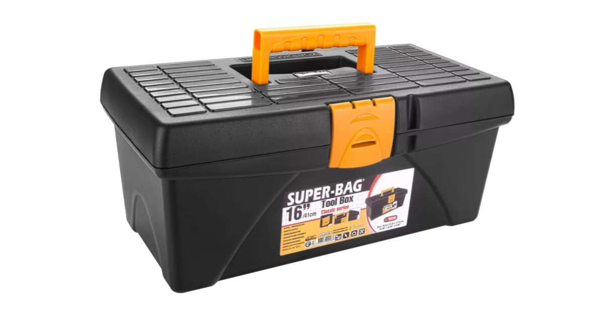 Cutie pentru scule 16" - aceasta cutie este fabricata din material plastic rezistent si ajuta la depozitarea, organizarea si transportarea sculelor de mana, cum ar fi: patenti, clesti, ciocane, suruburi, surubelnite, cuie, etc oferind o protectie ridicata impotriva umezelii si a coroziunii.