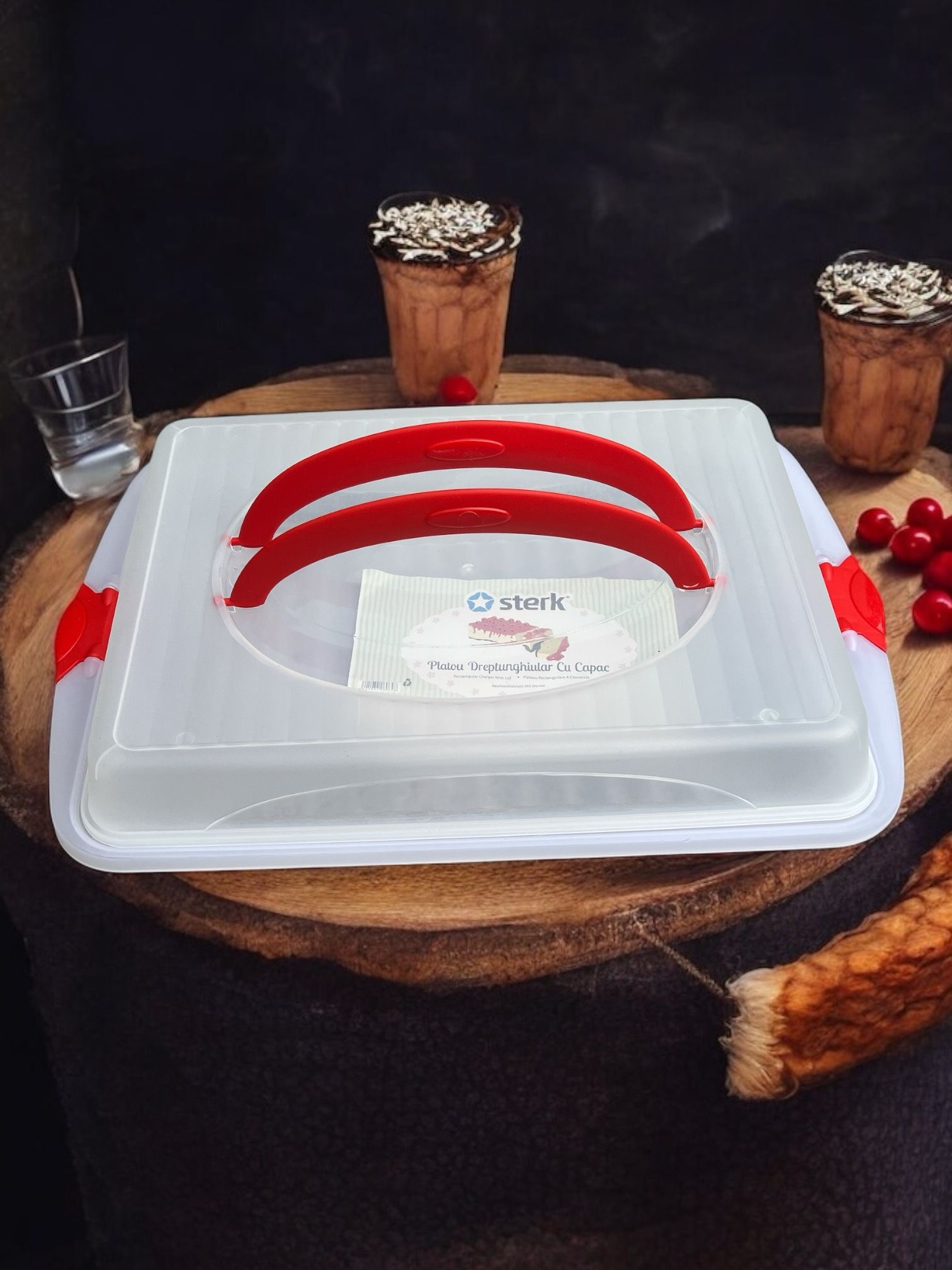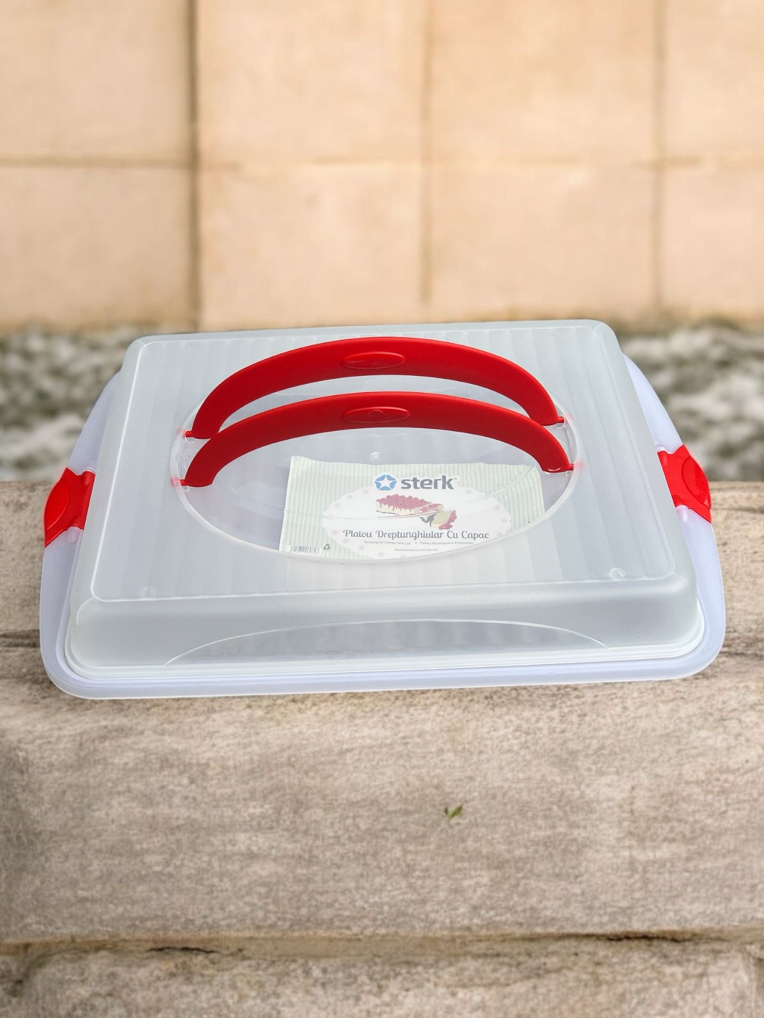 Cutie prajituri/tort cu capac si maner 45 x 30 x 9.5 cm - aceasta cutie este ideala pentru prezentarea si servirea torturilor, fiind un accesoriu practic si util in orice bucatarie.