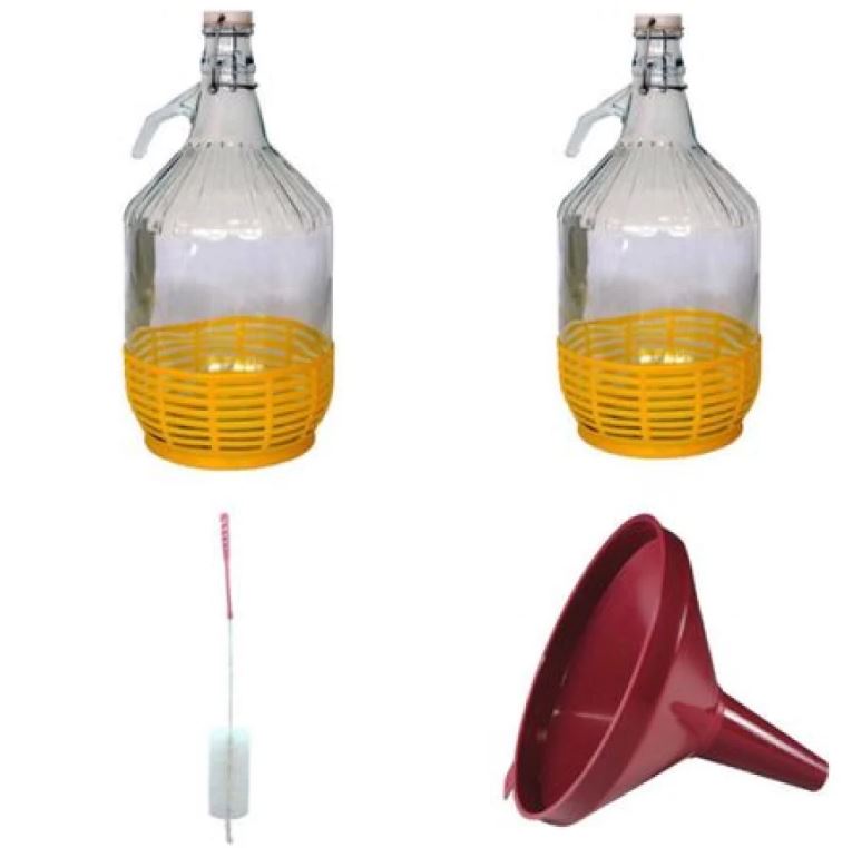 Damigeana 5L din sticla, Dop cu sarma, Inchidere ermetica x2 + Palnie mare 20 cm + Perie pentru damigeana Lux - acest set este util in orice gospodarie.