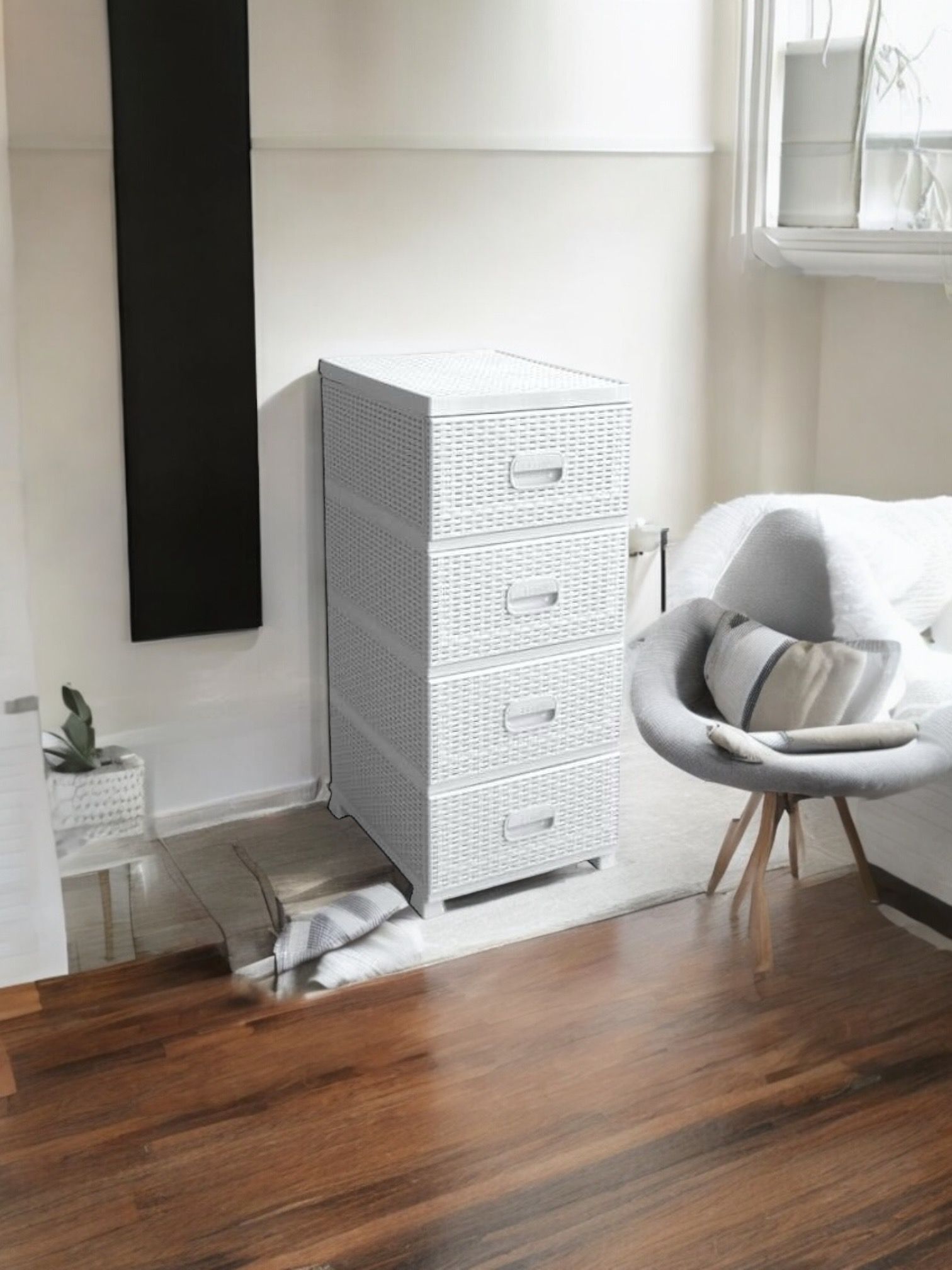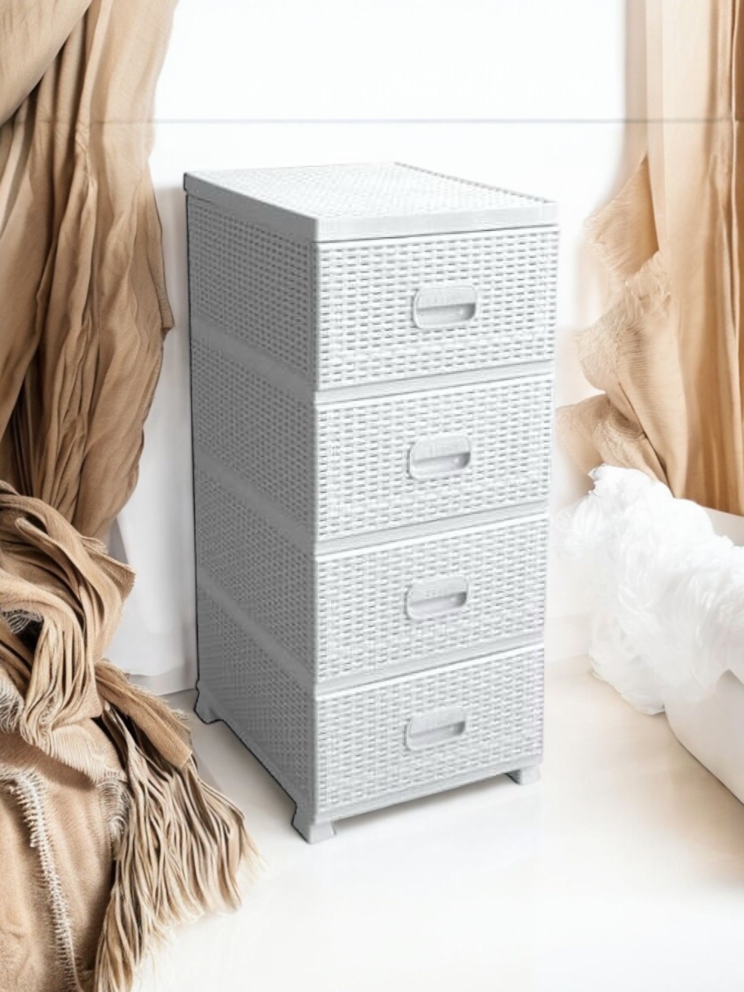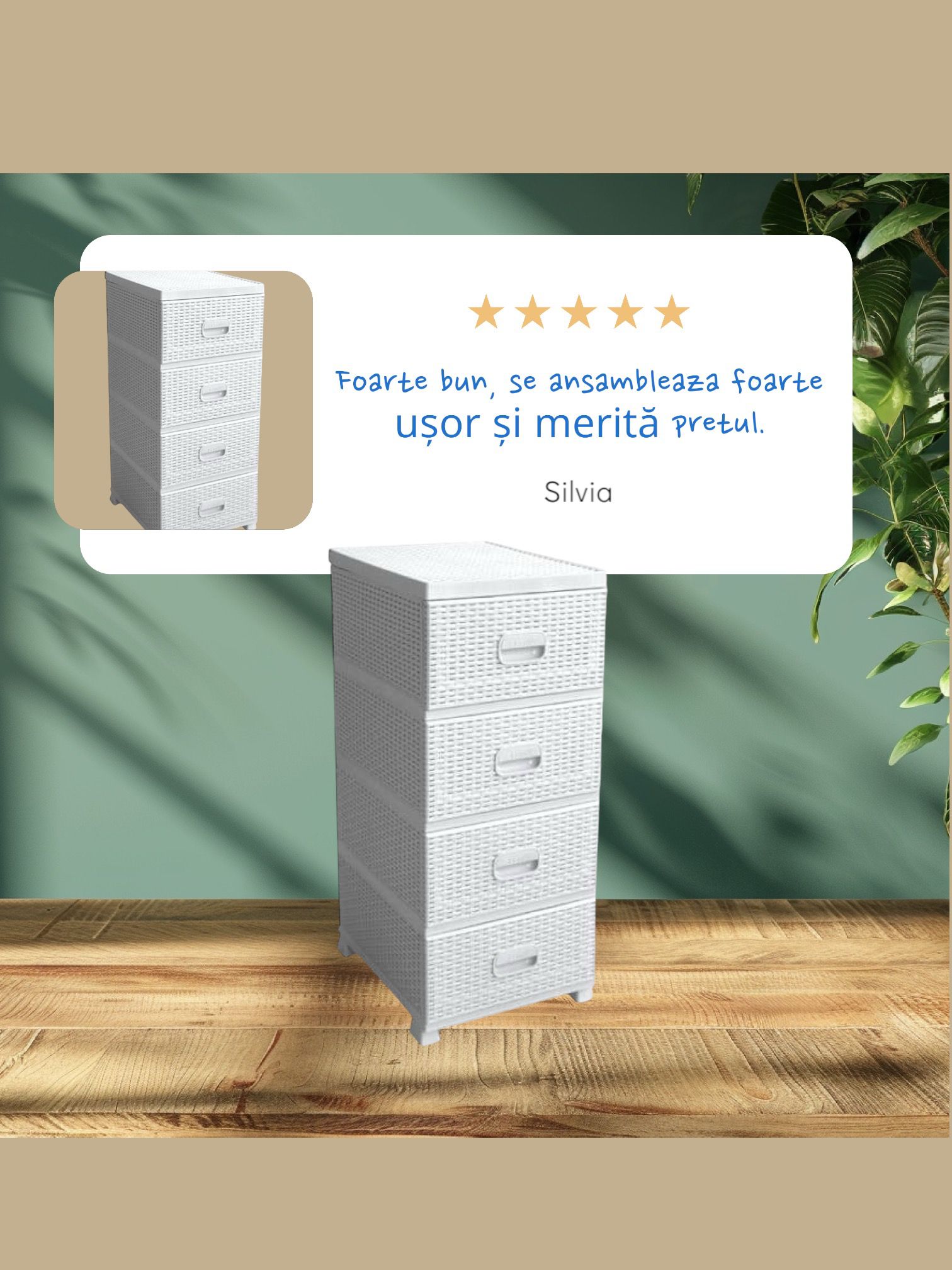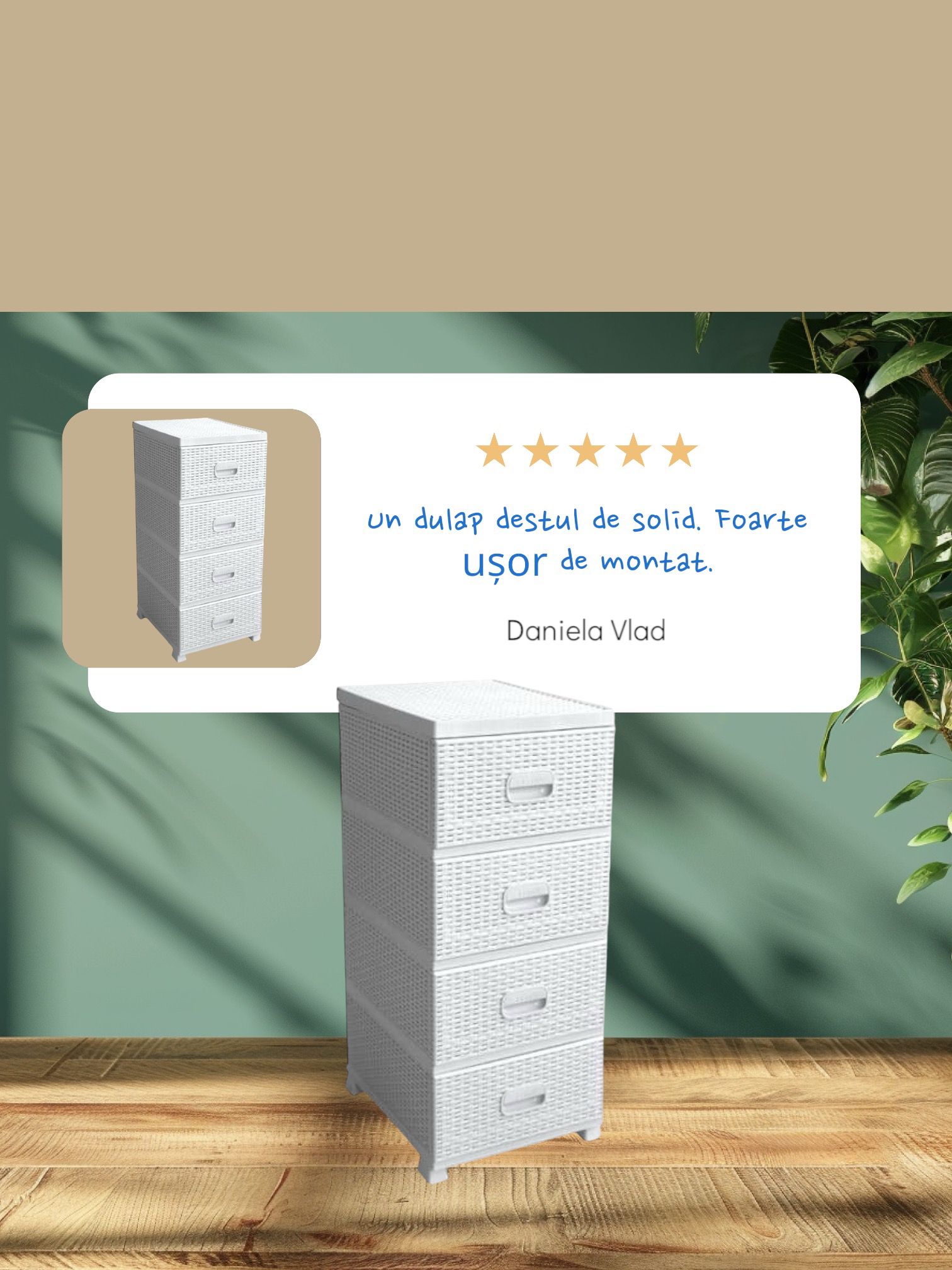 Dulap din plastic depozitare tip ratan alb cu 4 sertare 47x38x92