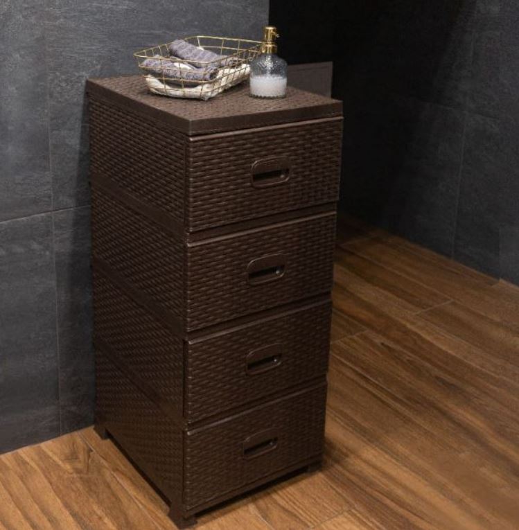 Dulap din Plastic Depozitare Tip Ratan gri cu 4 Sertare 47x38x92 - acest dulap este confectionat cu 4 sertare din plastic model ratan de culoare maro, ideal pentru organizarea si depozitarea obiectelor.