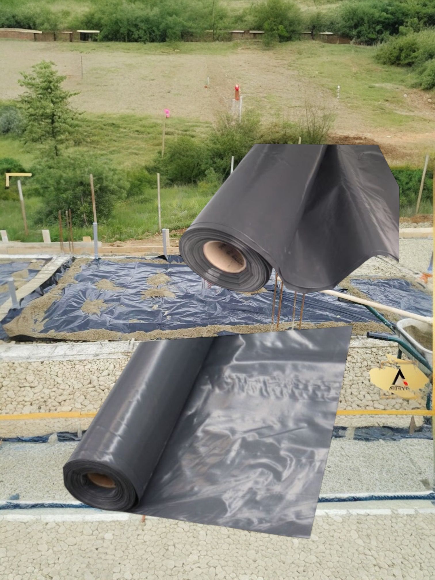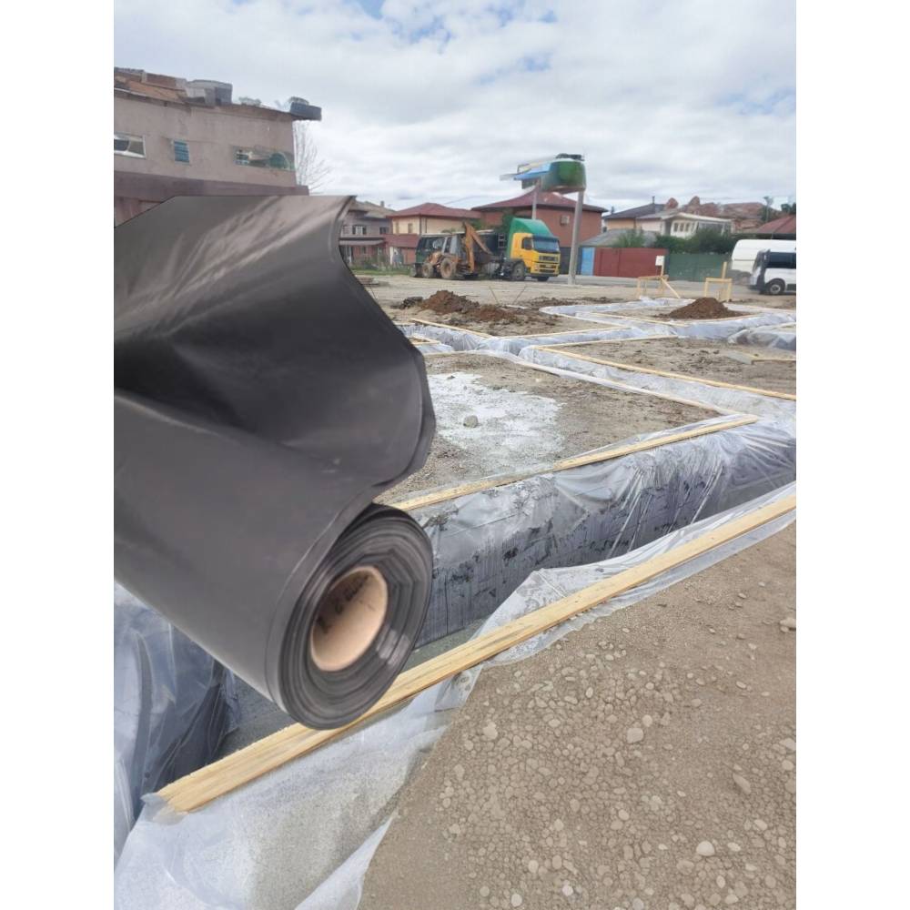 Folie constructii neagra 4.2m latime, 20m lungime - aceasta folie este fabricata din polietilena reciclata 100% si se foloseste in special in constructii pentru acoperirea suprafetelor pe care se toarna beton.