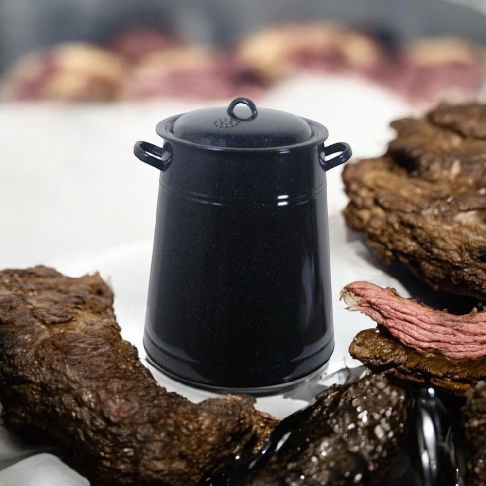 Garnita emailata 5 L este un bidon untura cu capac potrivit pentru a depozita untura sau pentru pastrarea si conservarea carnii. ✔️Gatirea in garnita da savoare carnii si ii confera un gust deosebit.
