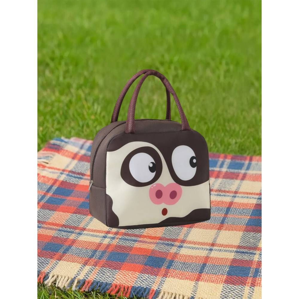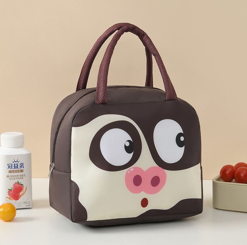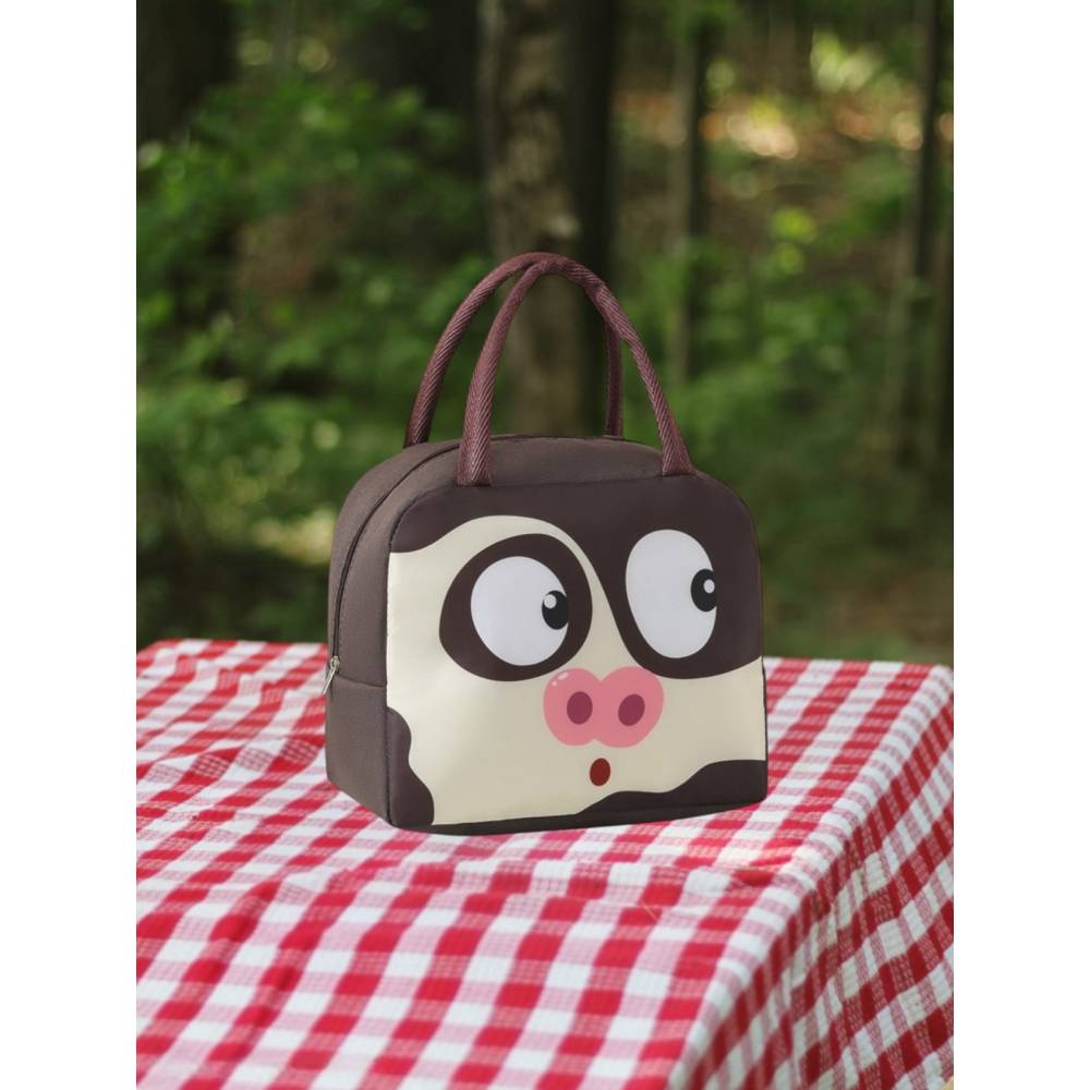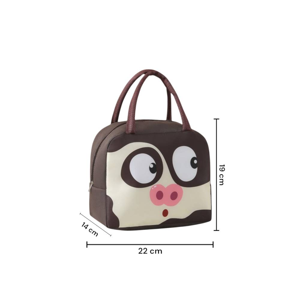 Geanta frigorifica portabila pentru copii Model Porc Maro 22x14x19cmeste ideala pentru pastrarea alimentelor si a bauturilor reci pe caldura fiind realizata din PVC si un strat de aluminiu la interior, mentinand o temperatura constanta pentru alimente sau bauturi atunci cand mergi in excursie, calatorii, la picnic, plaja, camping sau la scoala etc.