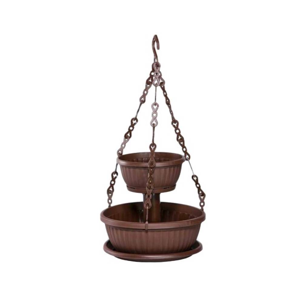 Ghiveci etajat 2 nivele cu lant, maro- acest ghiveci are un design elegant si se poate utiliza atat la interior (casa, terasa) cat si la exterior(in gradina) oferind un suport stabil pentru flori.