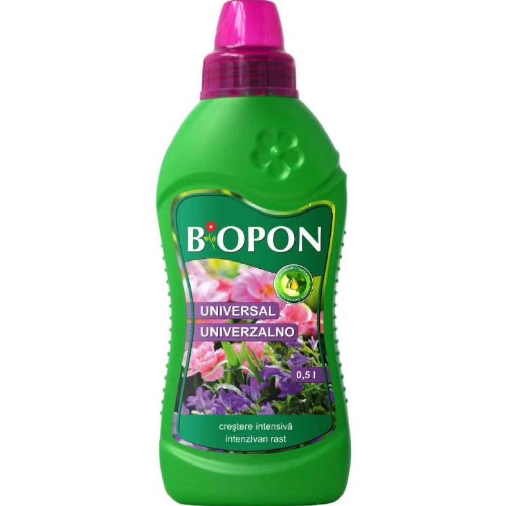 Ingrasamant universal BIOPON 1L asigura o inflorire bogata si stimuleaza cresterea intensa a plantelor.