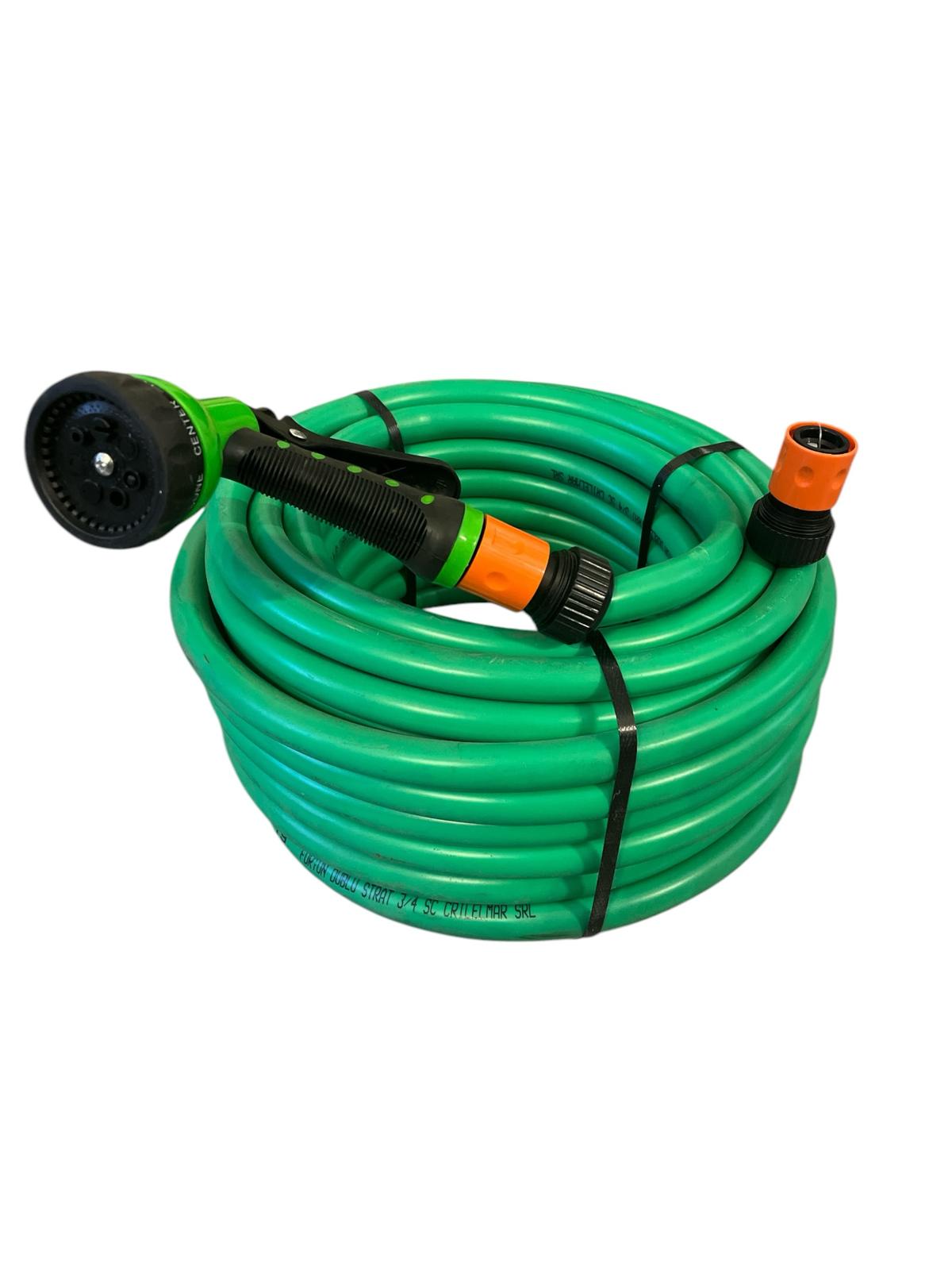 Kit irigare gradina furtun 3/4 - 25m CRL, pistol apa si conectori - acest set complet este solutia perfecta in orice gospodarie pentru o irigare eficienta.