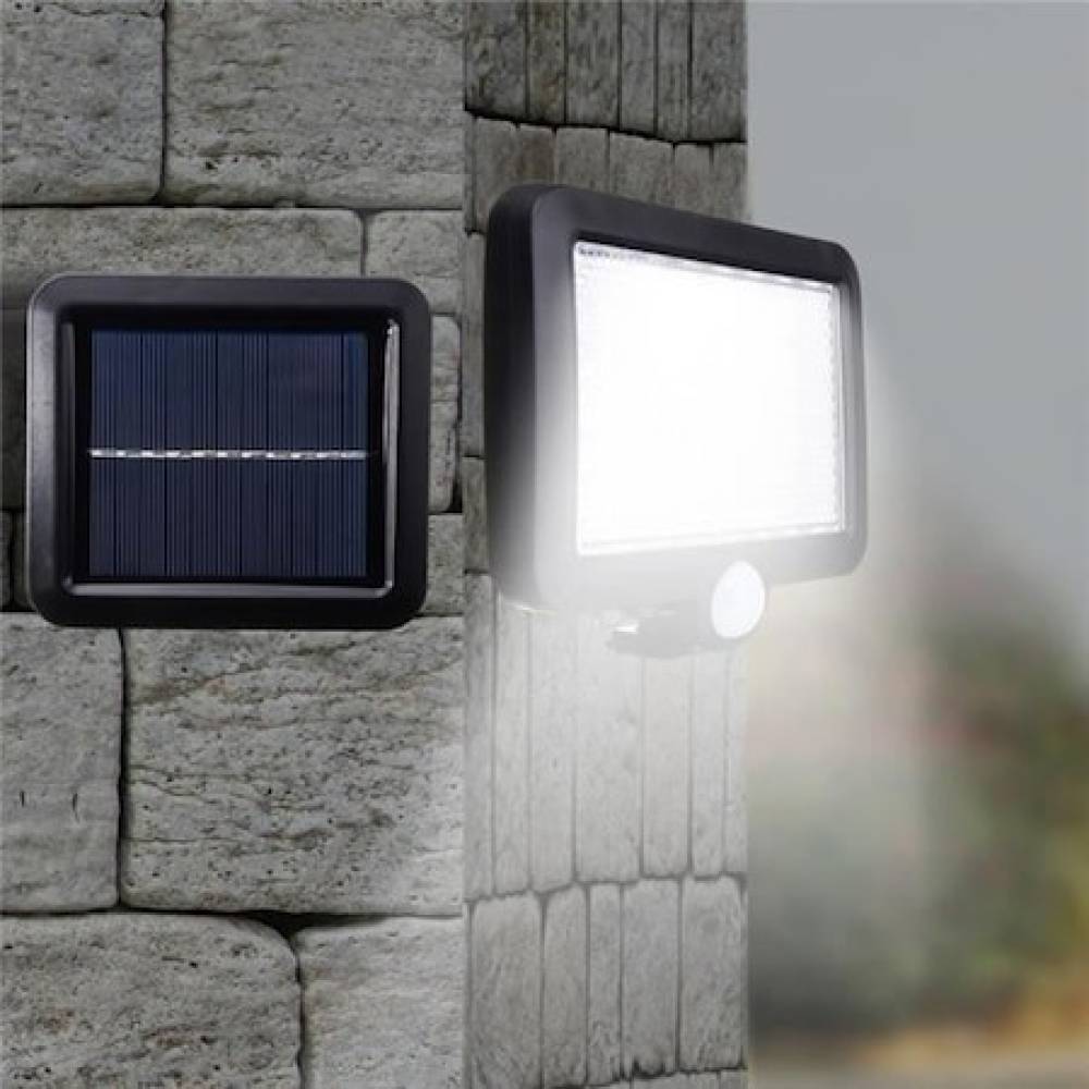 Aceasta lampa solara este echipata cu o baterie Li-ion care se incarca la lumina soarelui. In timpul zilei, panoul solar absoarbe in mod automat energia soarelui si o transforma in energie electrica pentru a incarca bateria. Are 56 LED-uri de mare putere, care emit seara o lumina stralucitoare. Datorita senzorului de miscare, lampa se va aprinde automat cand intrati in raza sa de detectare si se va opri cand parasiti zona. Lampa noastra solara este ecologica, durabila, economiseste energie si necesita intretinere redusa. Nu trebuie sa platiti factura la curent pentru aceasta lumina, deoarece lampa este alimentata cu energie solara. Este proiectata pentru a fi rezistenta la apa si potrivita pentru utilizarea zilnica in exterior. Poate fi usor montata pe perete.