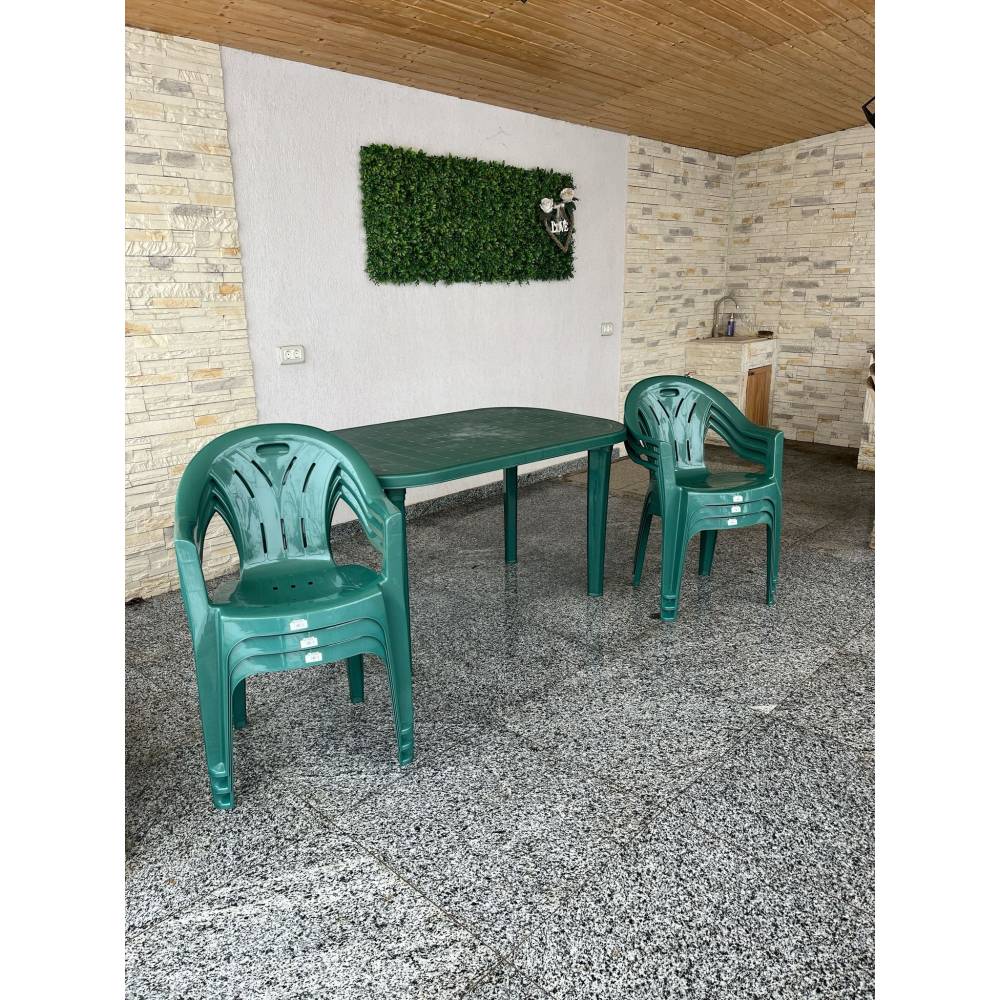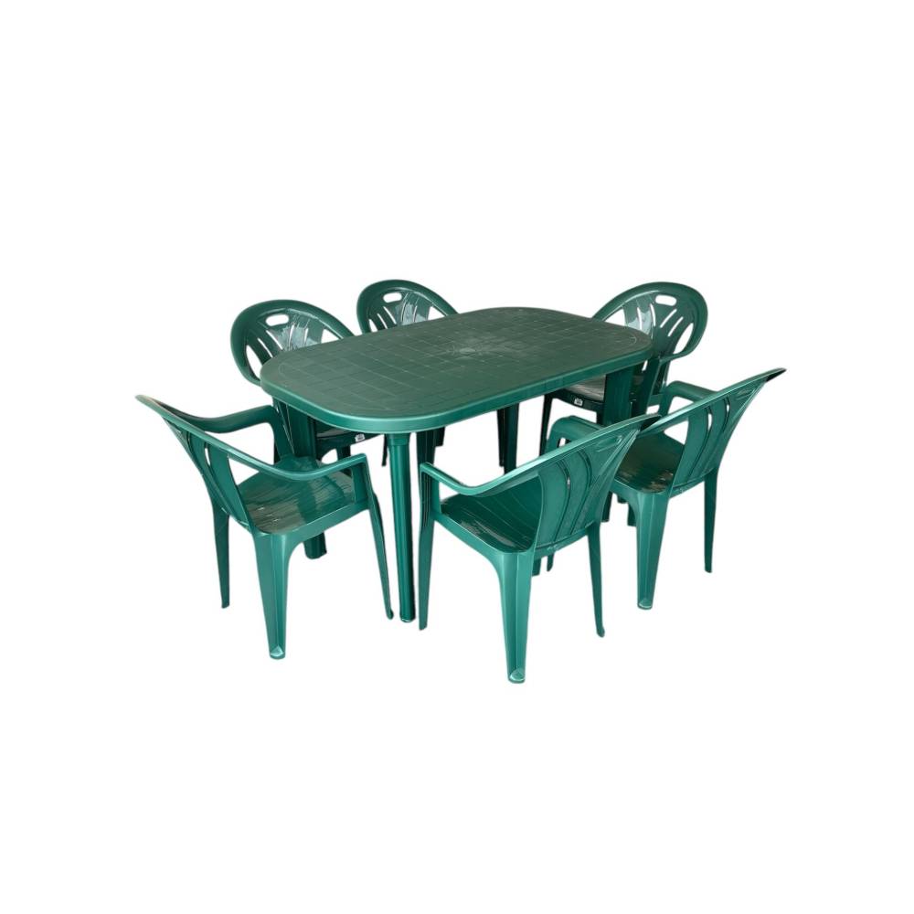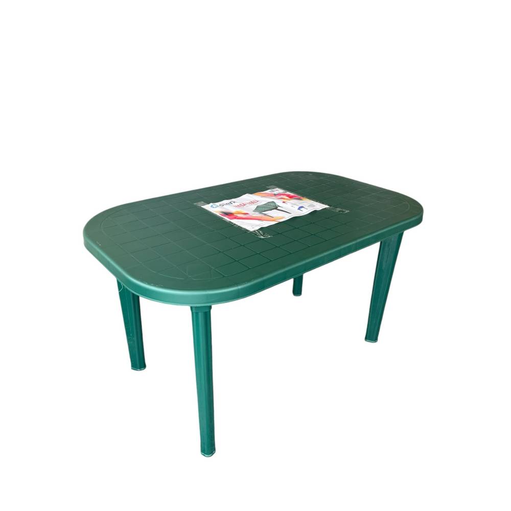 ✔️Masa fixa pentru gradina plastic, ovala, verde, 6 persoane, 135 x 80 x 75 cm - 1 buc