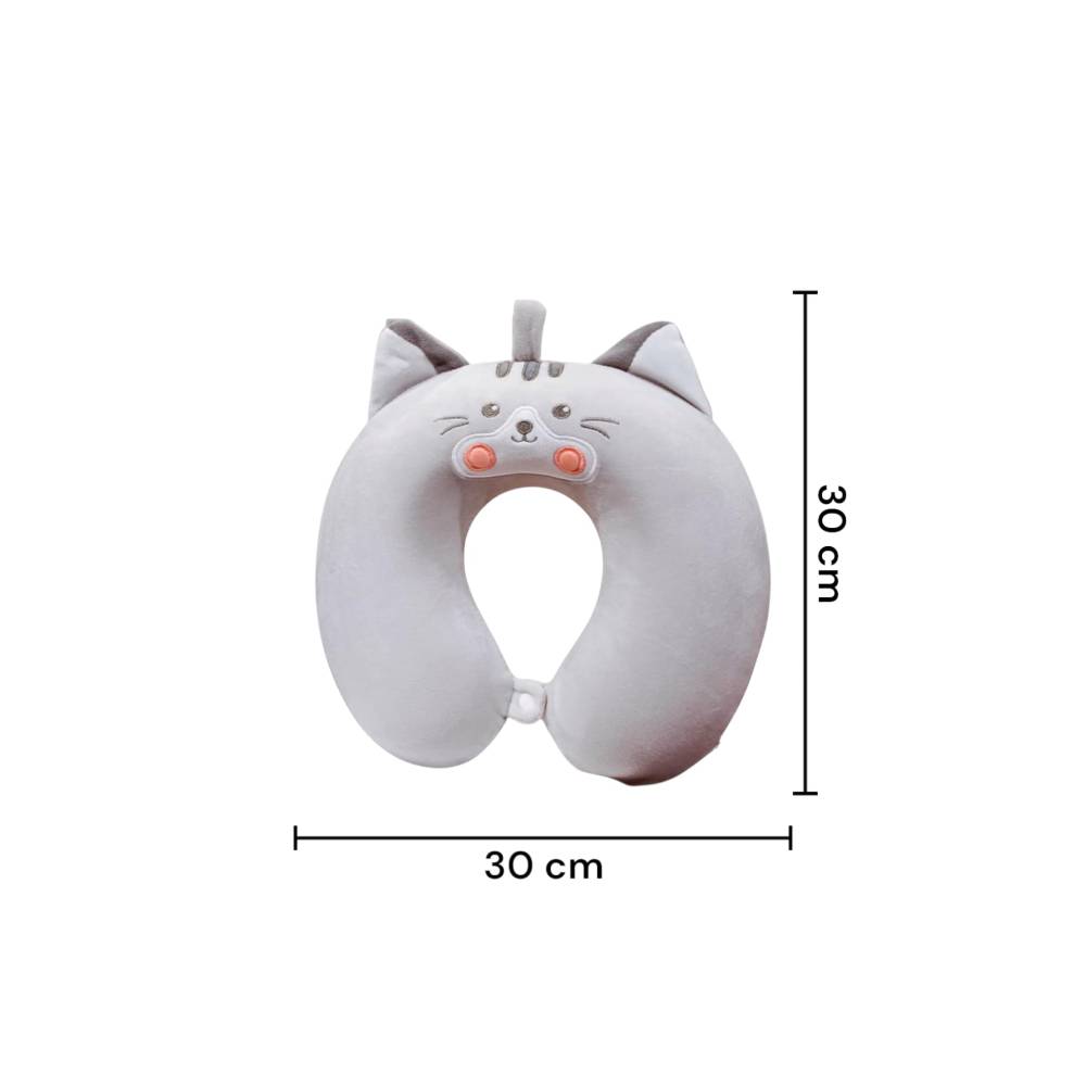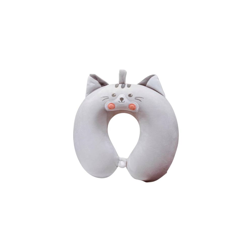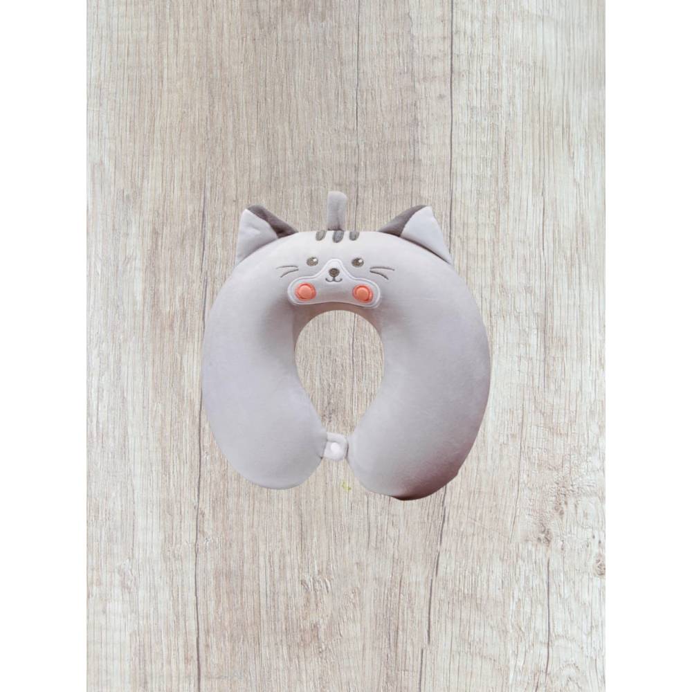 ✅Perna de Calatorie pentru Gat si Cap, Umplutura din Spuma cu Memorie, Model Pisica, Gri - Perna de voiaj, umplutura din spuma cu memorie, compacta si practica, ideala pentru sustinerea gatului in timpul calatoriilor lungi cu masina, avionul sau pentru momentele de odihna la birou. Sistemul de prindere este pe baza de capse, usor de fixat in jurul gatului.