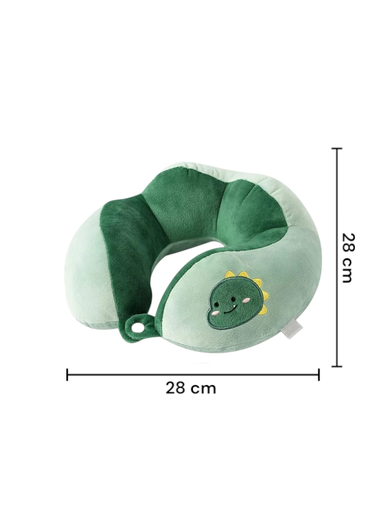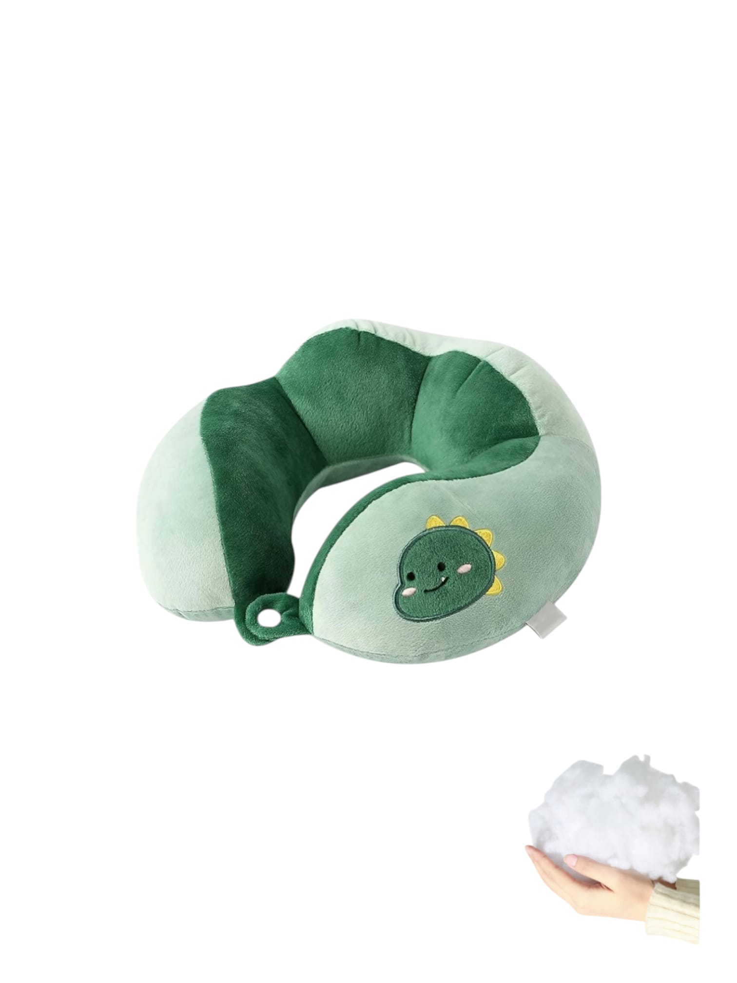 ✅Perna de Calatorie pentru Gat, Umplutura cu Bumbac, Model Brodat Dinozaur, Verde - Perna de voiaj umpluta cu bumbac, compacta si practica, ideala pentru sustinerea gatului in timpul calatoriilor lungi cu masina, avionul sau pentru momentele de odihna la birou. Sistemul de prindere este pe baza de capse, usor de fixat in jurul gatului.