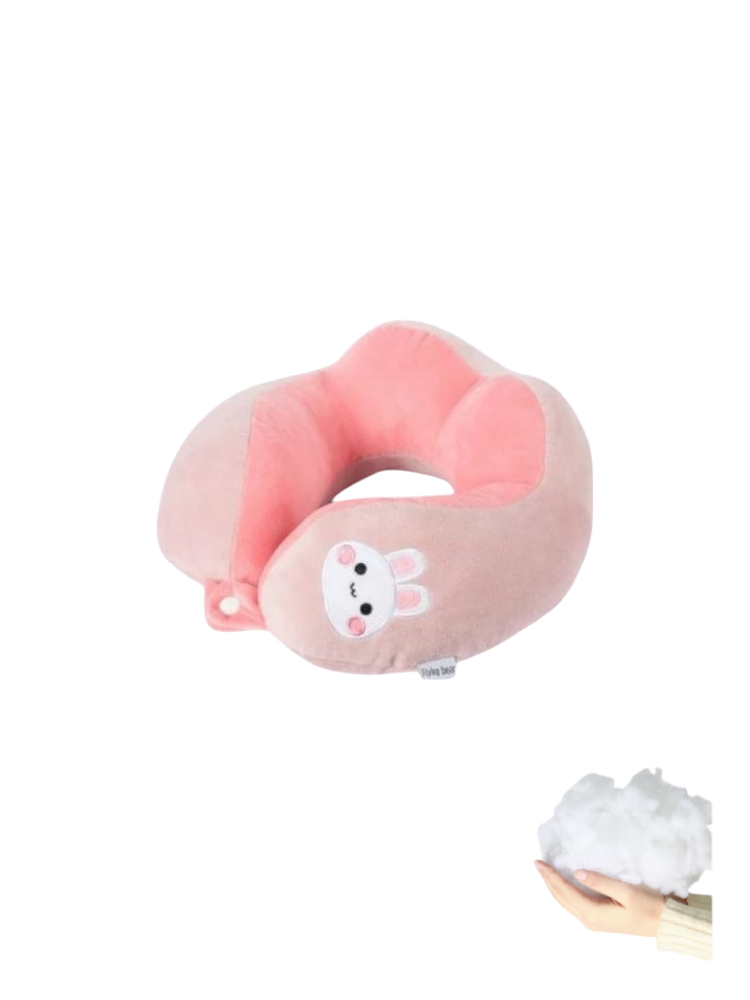 ✅Perna de Calatorie pentru Gat, Umplutura cu Bumbac, Model Brodat Iepure, Roz - Perna de voiaj umpluta cu bumbac, compacta si practica, ideala pentru sustinerea gatului in timpul calatoriilor lungi cu masina, avionul sau pentru momentele de odihna la birou. Sistemul de prindere este pe baza de capse, usor de fixat in jurul gatului.