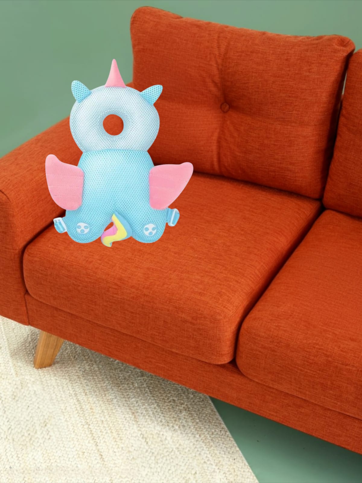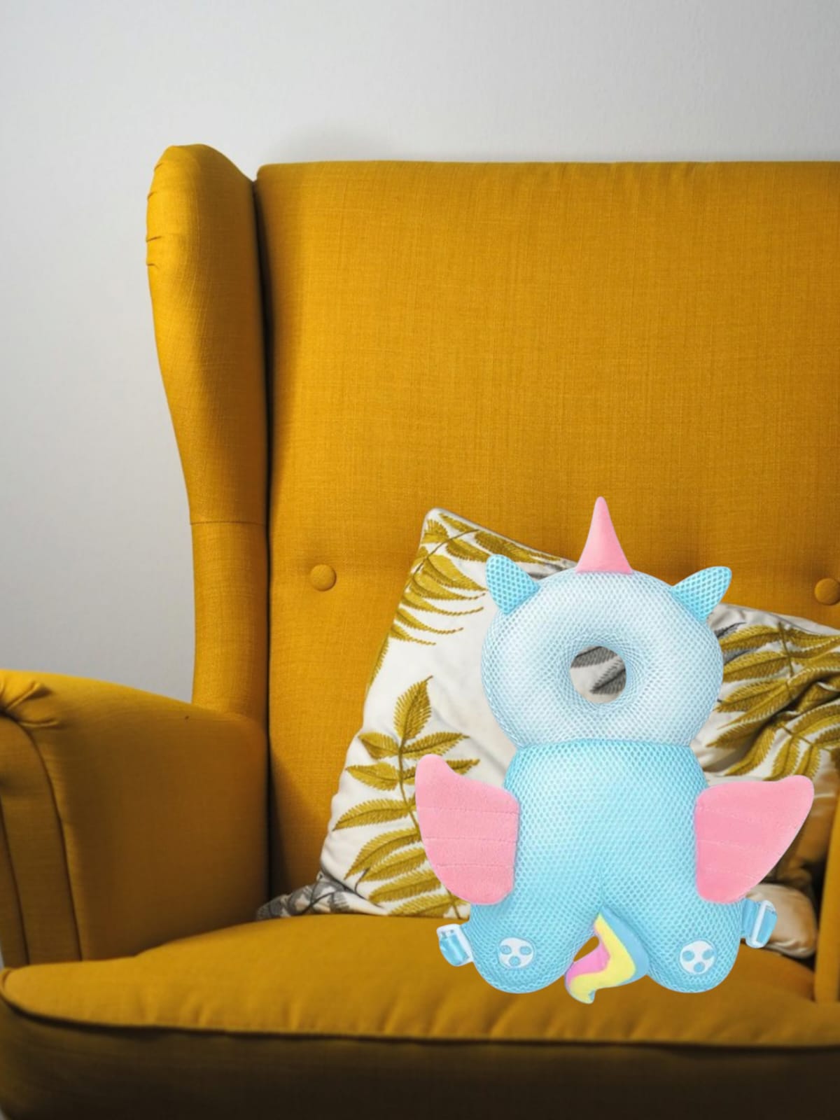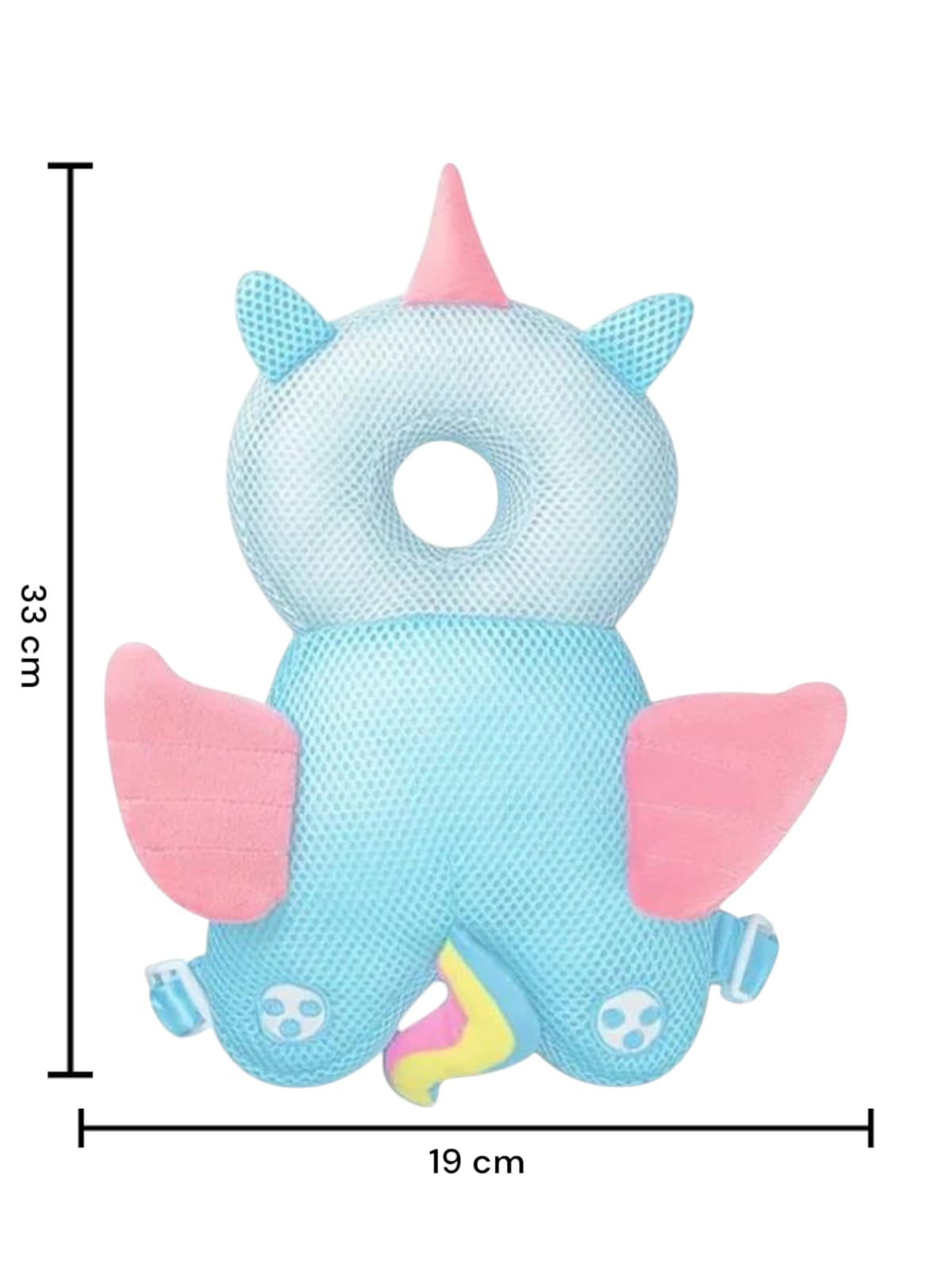 ✅Perna Tip Rucsac pentru Protectia Capului pentru Bebelusi, Tip Unicorn, Albastru, Plasa - Usoara, practica si sigura, conceputa pentru a preveni accidentarile in timpul cazaturilor sau al primilor pasi. Design adorabil cu o greutate redusa o fac usor de purtat de catre cei mici.