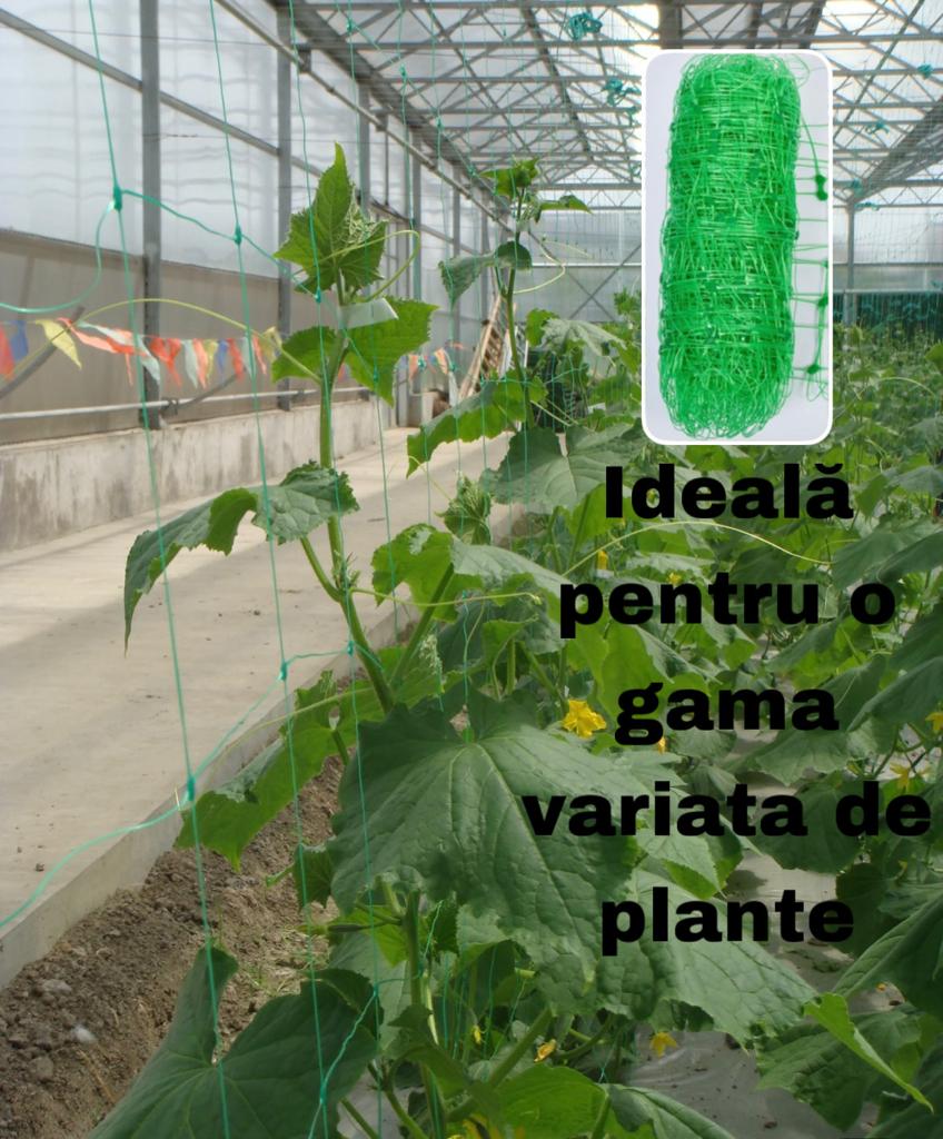 Plasa pentru castraveti si alte legume 1.7 x 10m - aceasta plasa se foloseste pentru sustinerea plantelor atat pe verticala pentru legume (castraveti, fasole, mazare, etc.) cat si oblic pentru dirijarea cresterii plantelor (ex. culturile de fasole urcatoare, culturi de frezie), evitandu-se astfel ruperea tulpinilor.