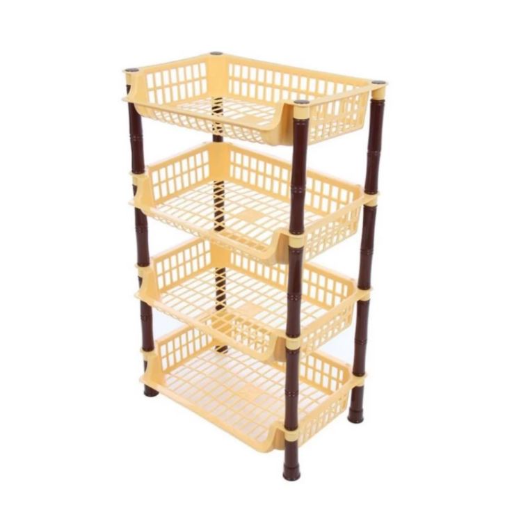 Raft fructe si legume, 4 polite 41 x29 x 70 cm Maro - aceasta etajera este realizata dintr-un plastic rezistent de inalta calitate si se foloseste pentru depozitarea fructelor si legumelor in bucatarie, balcon, debara sau magazie.