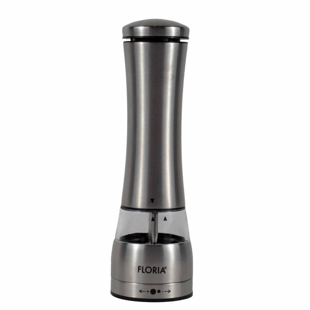 Rasnita electrica sare, piper, condimente cu baterii - aceasta rasnita electrica este conceputa pentru a fi utilizata cu o singura mana, are geam transparent pentru a vedea cat de multa cantitate de condimente a ramas in recipient.