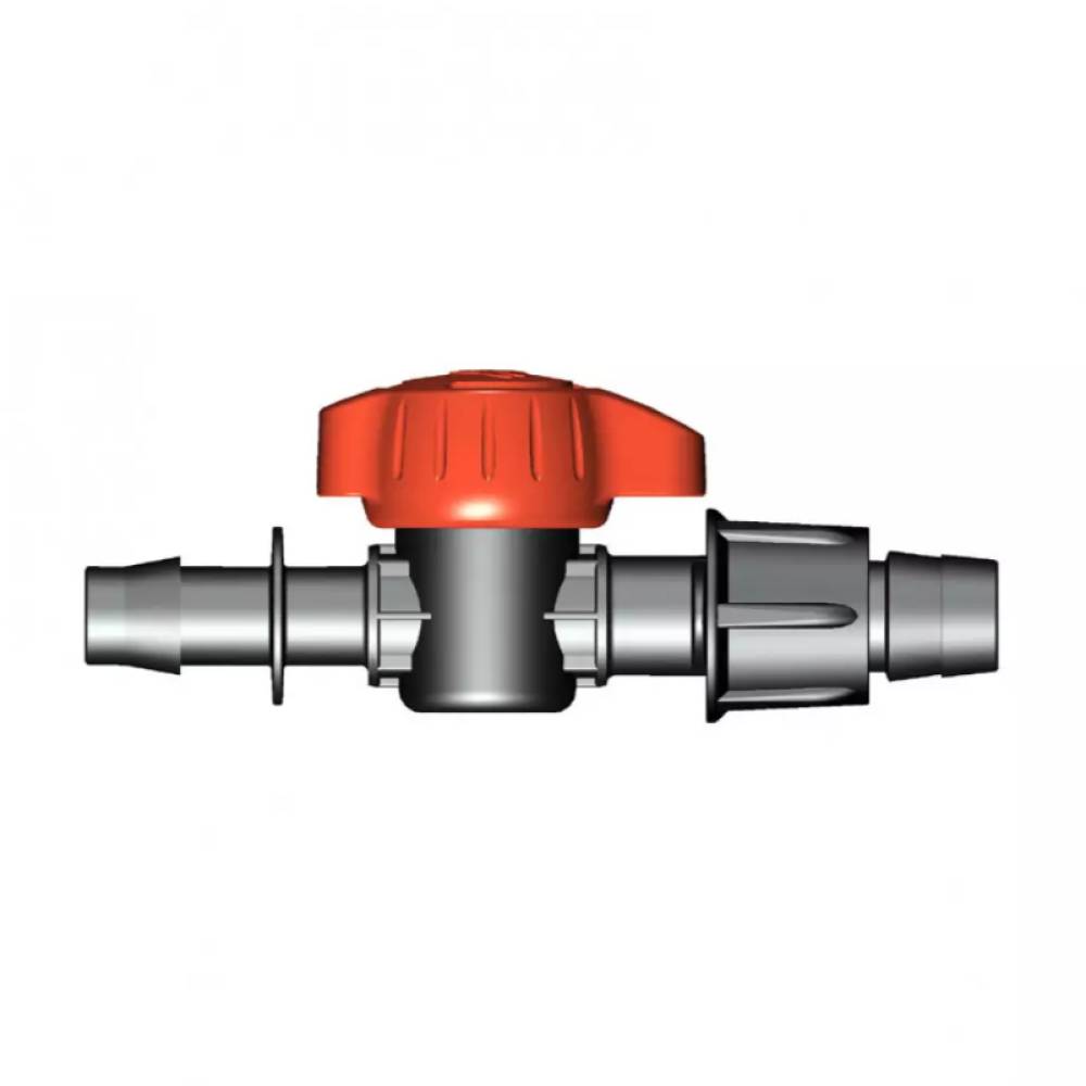 Robinet banda picurare 16mm, Teco Italia - este folosit pentru conectarea benzii de picurare cu diametru de 16 mm la conducta principala de apa (teava PEHD), cu posibilitatea de reglaj sau inchidere a debitului apei.