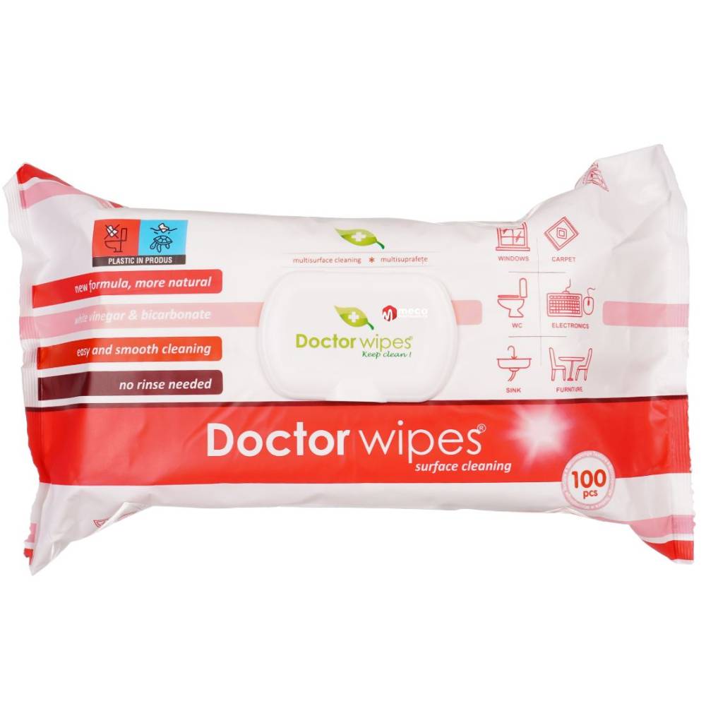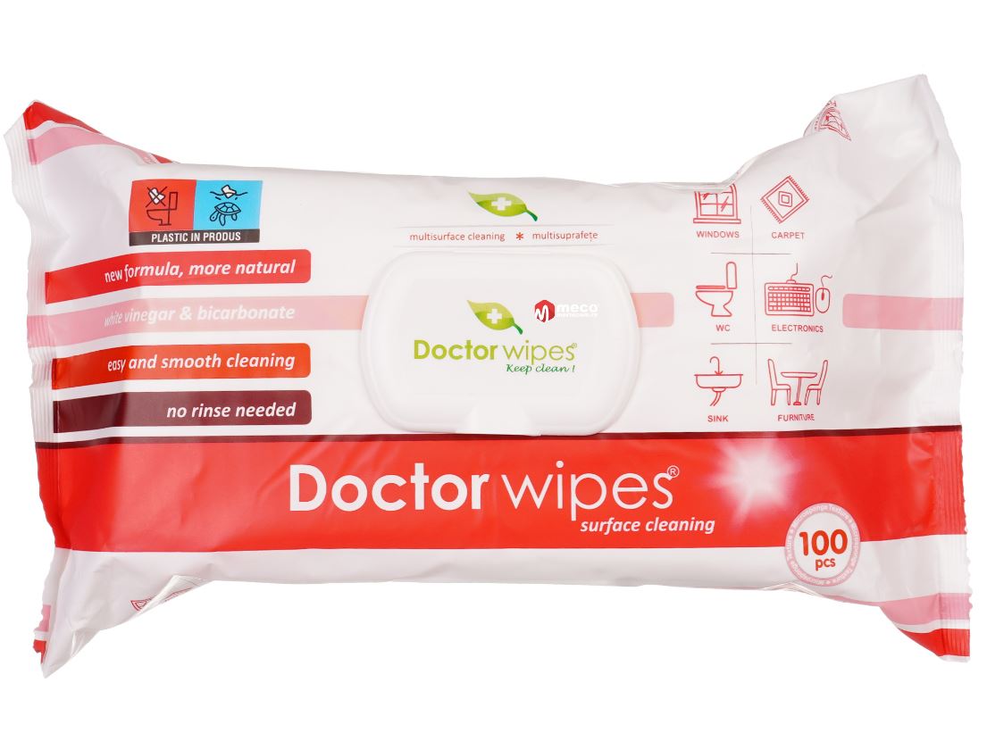 Servetele umede multisuprafete cu Bicarbonat si otet, 100 bucati, Doctor Wipes - aceste servetele sunt foarte eficiente pentru curatarea eficienta si rapida a tuturor tipurilor de suprafete din casa: sticla geamuri sau oglinzi, electrocasnice, elemente de mobilier canapele sau mobila, covoare sau diverse gadget-uri telefoane tablete, televizoare, laptop-uri etc.
