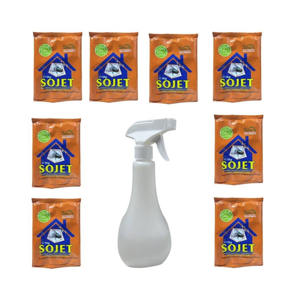 Set 8 x solutie pentru muste, insecticid 10 g + pulverizator 1 litru