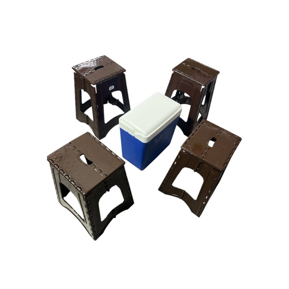 Set Camping - Lada frigorifica 24 L portabila + 4x Taburet / Scaun pliabil 45cm Maro