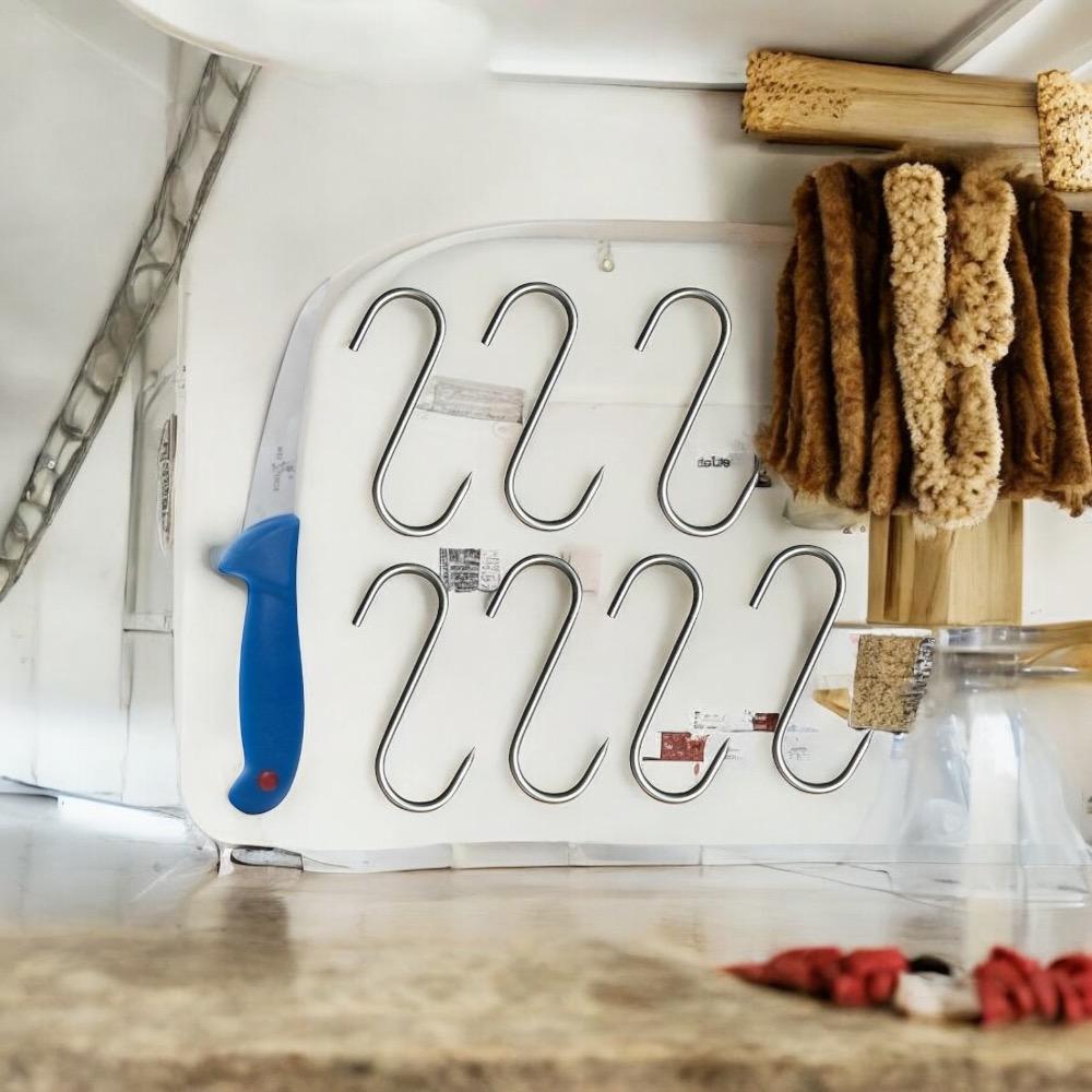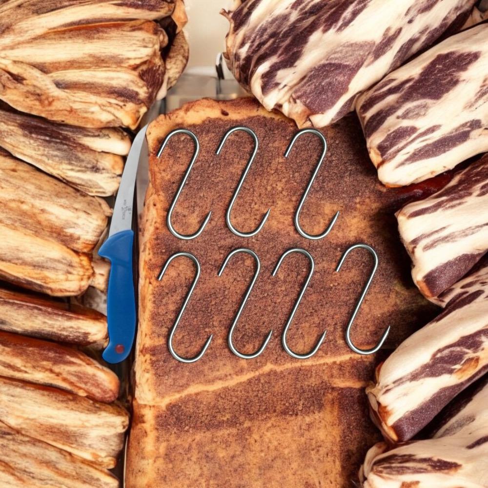 Designul in forma de S permite agatarea si indepartarea usoara a bucatilor de carne.