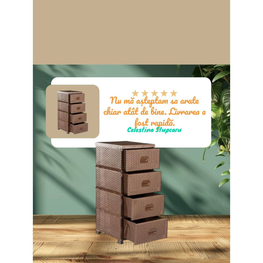 Dulap din plastic depozitare tip ratan maro cu 4 sertare 47x38x92