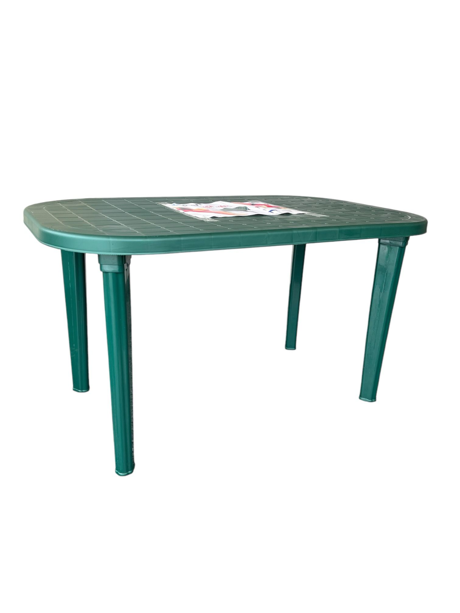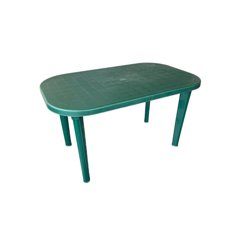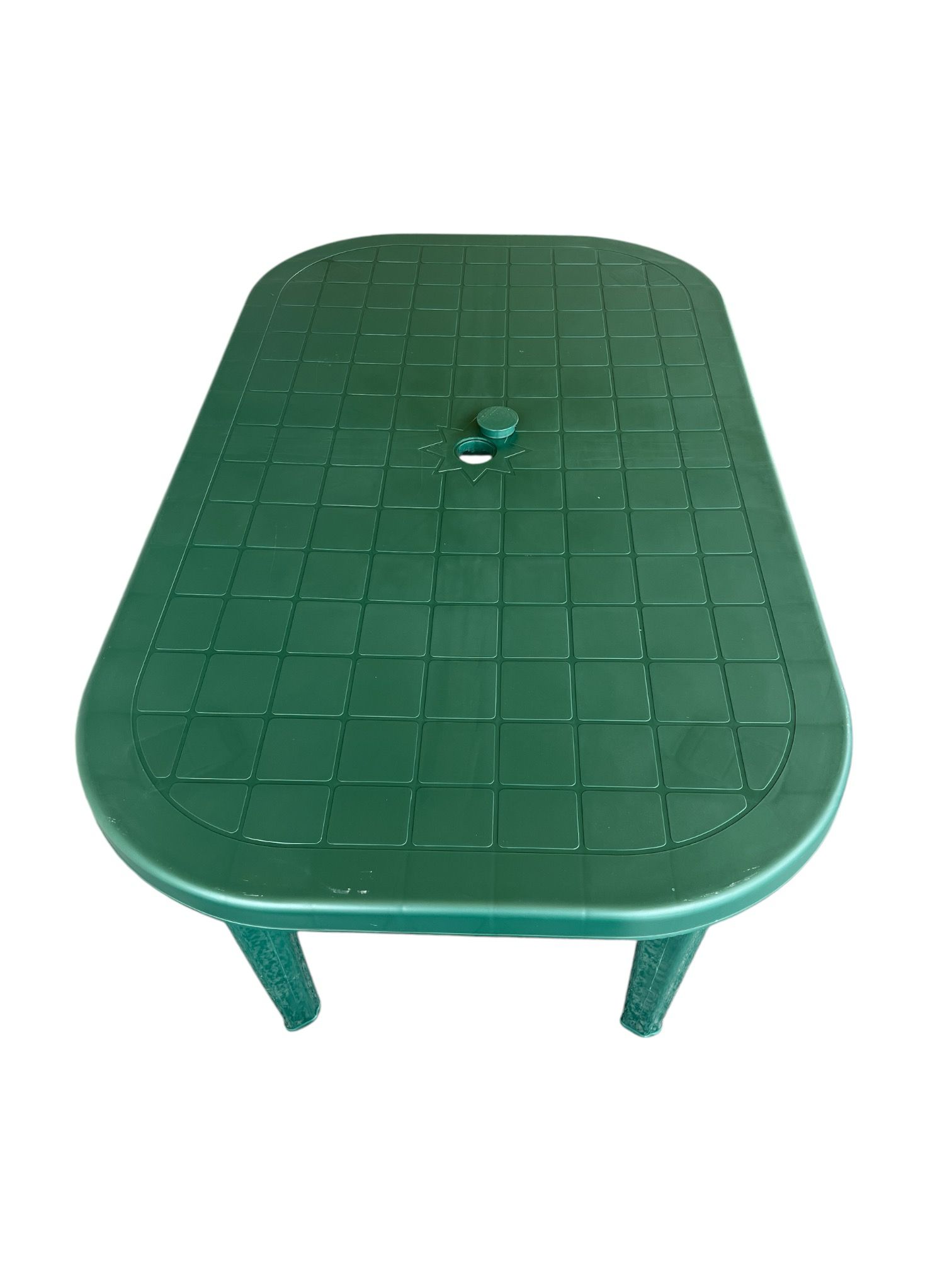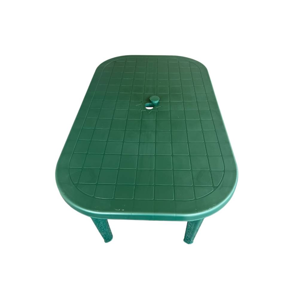 Masa fixa pentru gradina, plastic, ovala, verde, 6 persoane, 135 x 80 x 75 cm